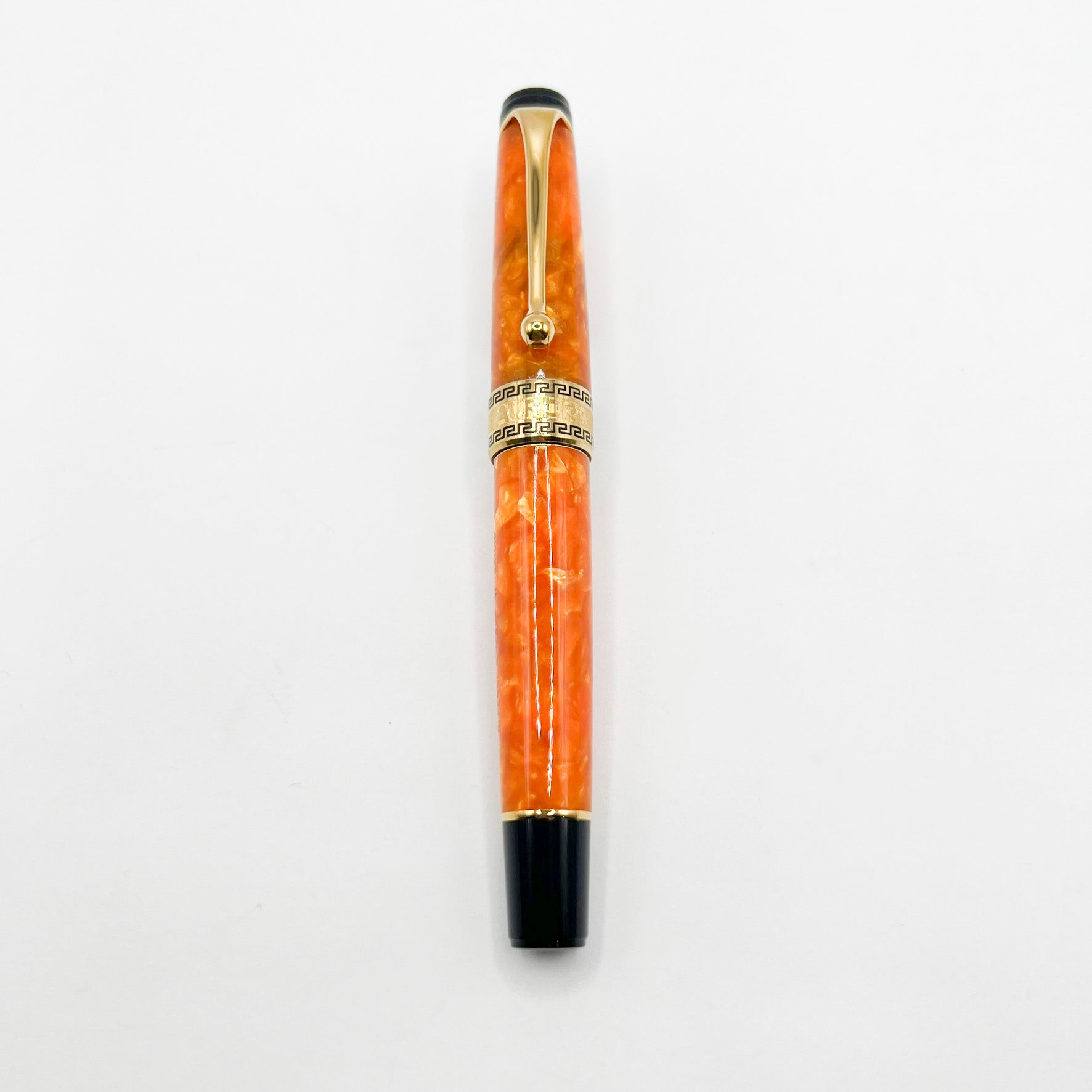 Aurora Optima Marbled Orange Auroloide Fountain Pen - Gold-Plated