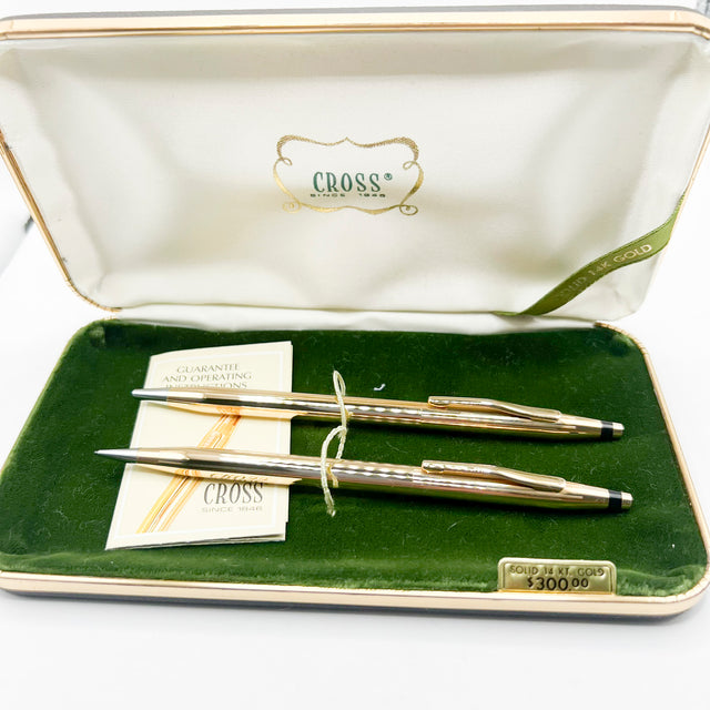 Cross Century SOLID 14kt Gold Ballpoint and Mechanical Pencil 0.7mm Set - MINT IN ORIGINAL BOX!!- Twist Action - Circa 1980s