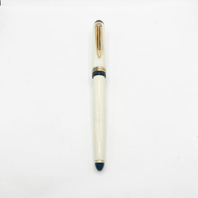Francois Yves Luthier Modigliani White Fountain Pen honoring  the Italian artist, Amedeo Modigliani - Limited Edition #0320 of 2300 -  White Lined Resin Body - Clip is a