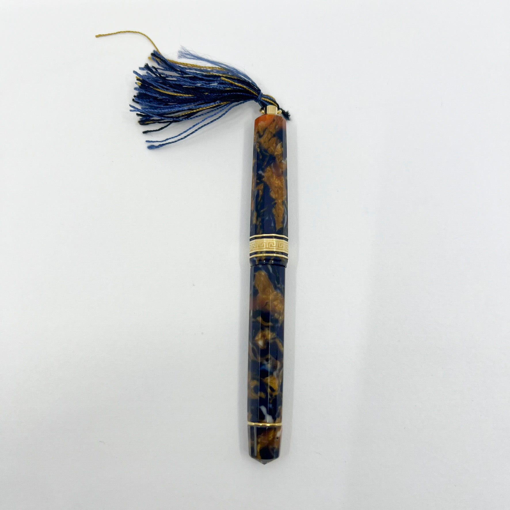 OMAS Princess Paragon Extra Blue Saffron Celluloid Fountain Pen - Semi-Flexible Medium 18kt Gold Nib