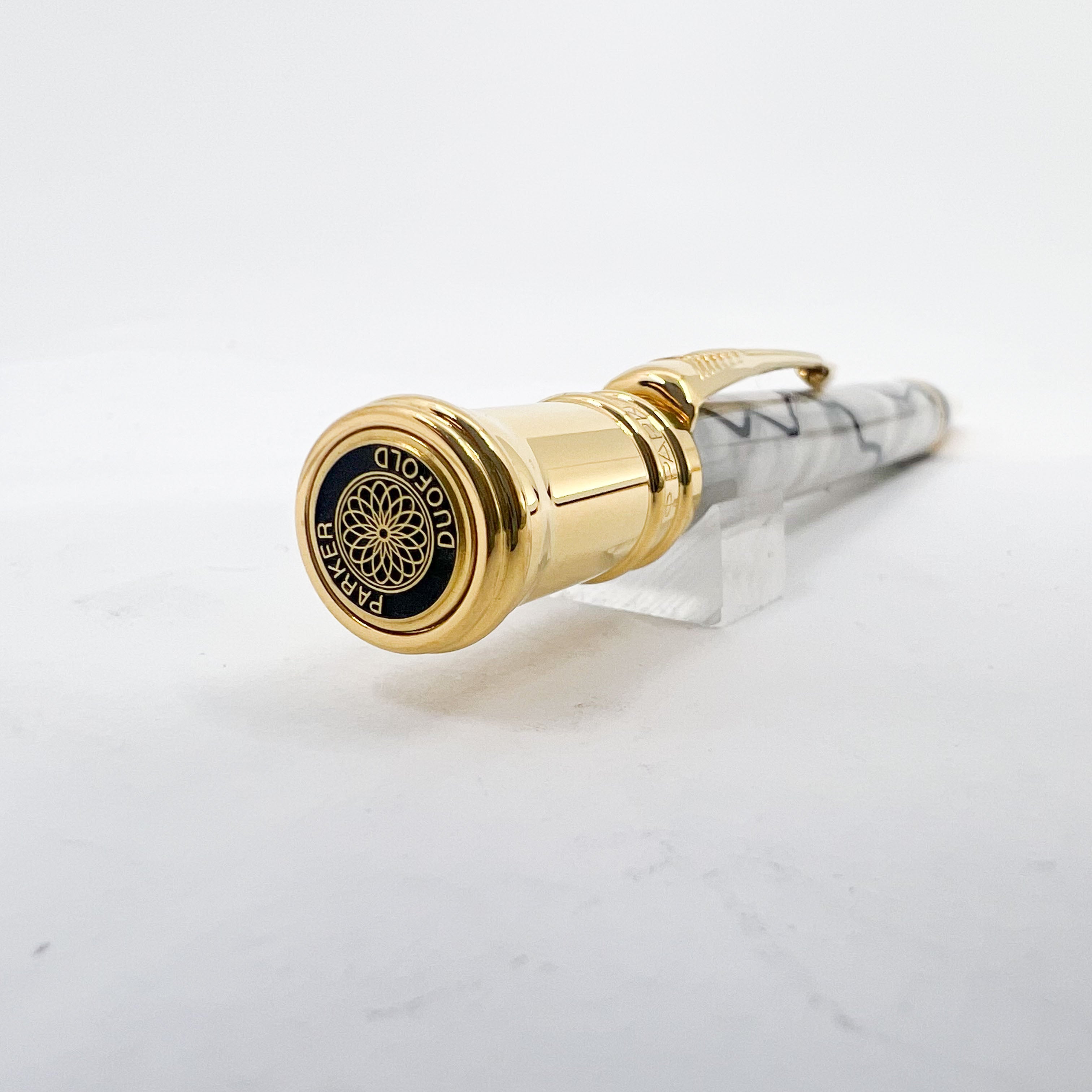 Parker Duofold Lustrous Pearl & Black Ballpoint Pen - Gold Plated