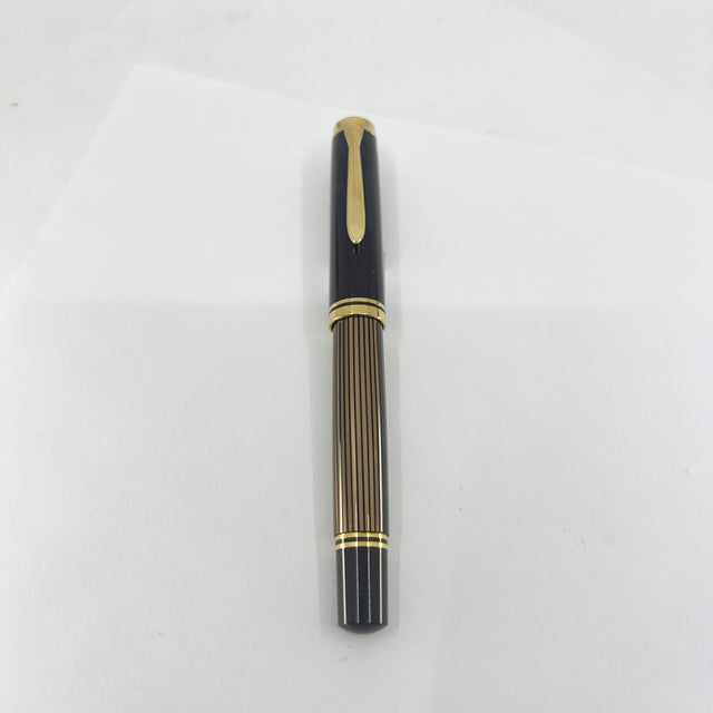 Pelikan M800 Brown Striped Barrel/Solid Brown Cap Fountain Pen - Medium 18kt Gold Nib