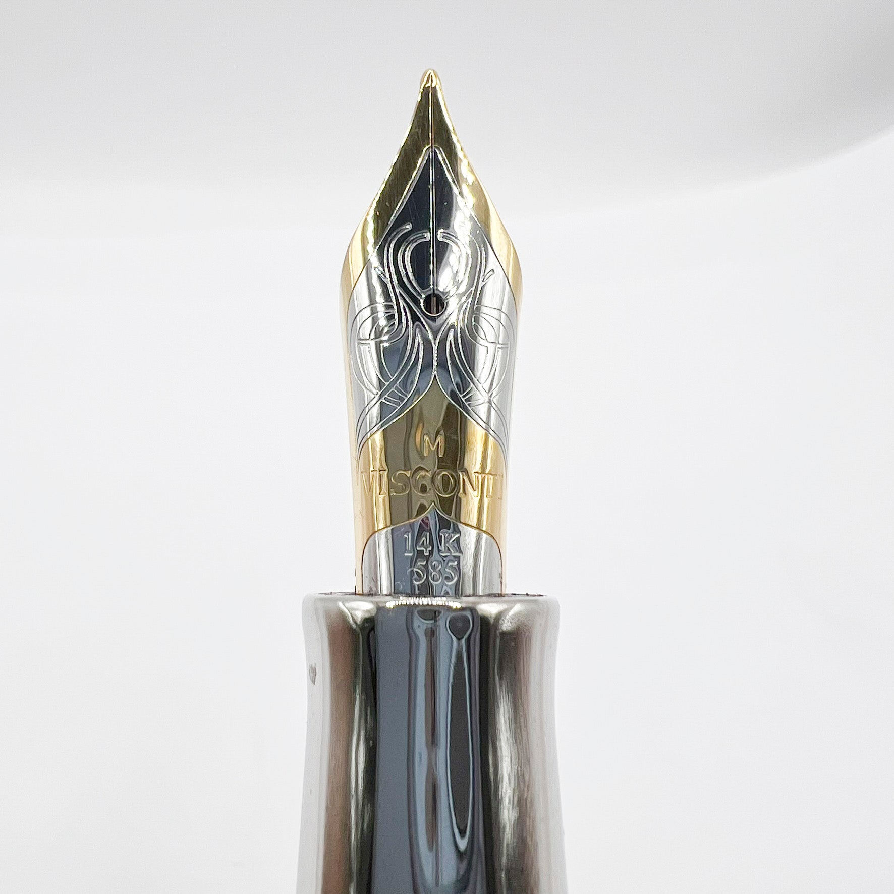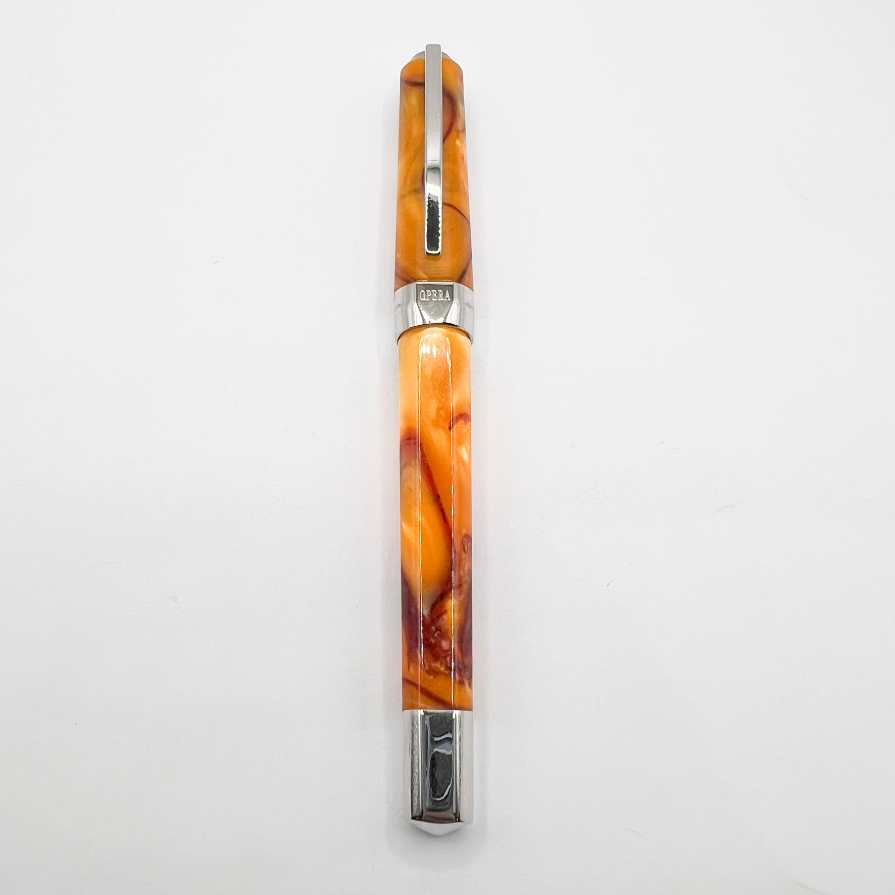 Visconti Opera Fountain Pen with Burgundy Streaking on Amber Backdrop - Medium 14kt Gold Nib