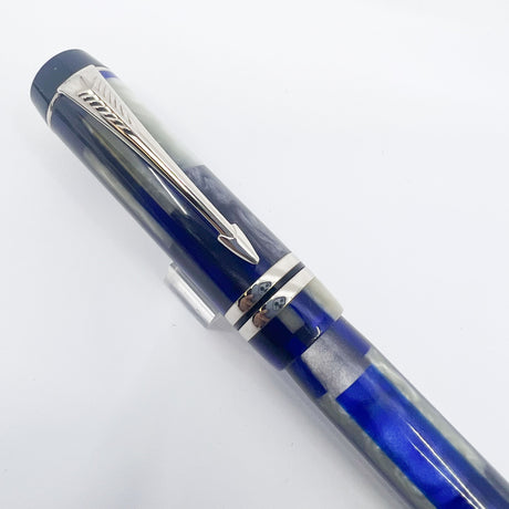 Parker Blue Mosaic International Duofold Fountain Pen - Medium 18kt Gold Nib