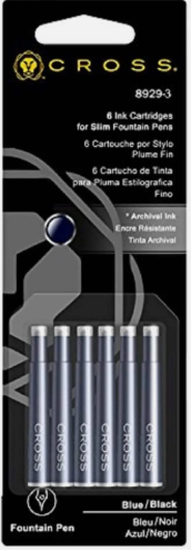Cross Slim Fountain Pen Ink Cartridge 8929-3 Blue Black (Pack of 6)