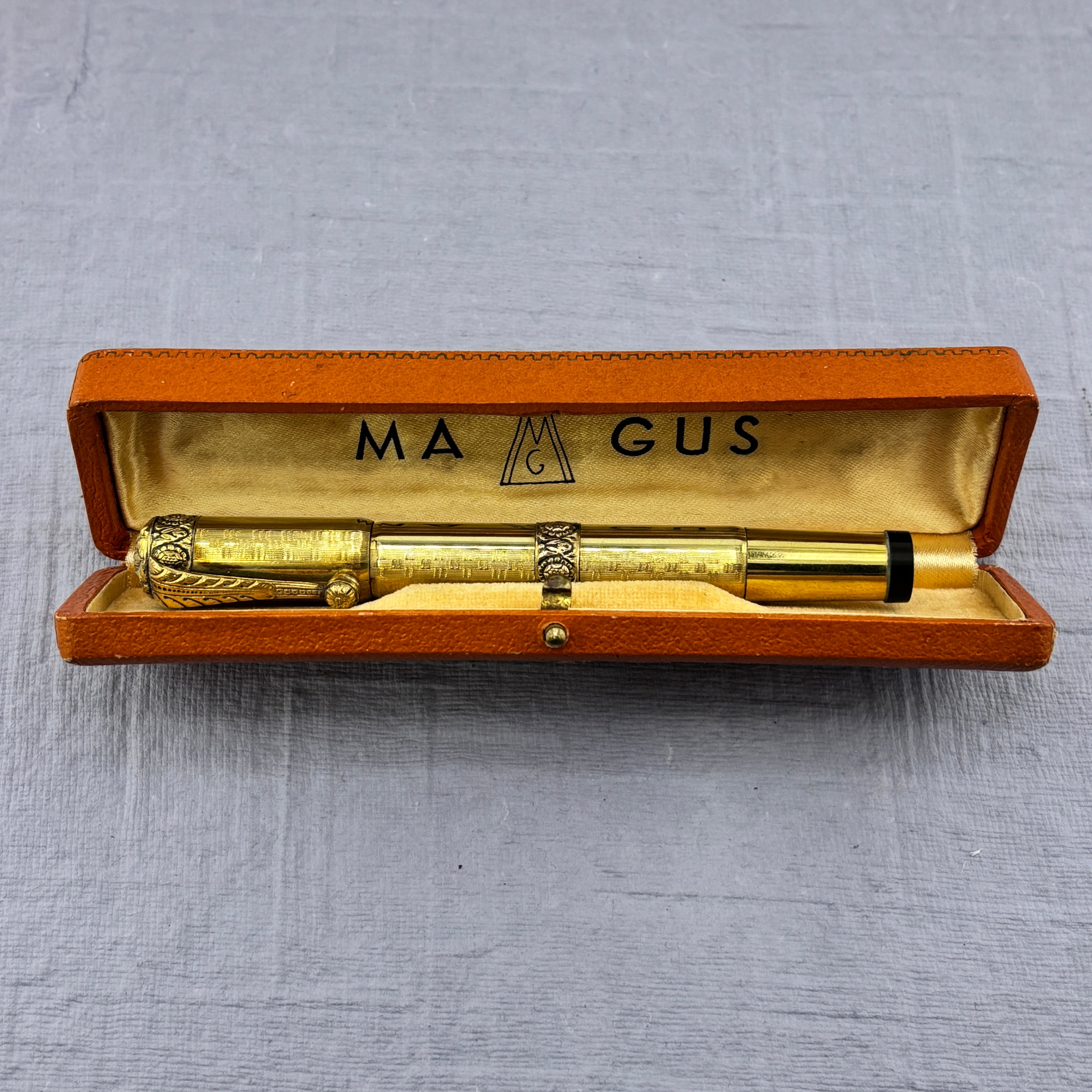 Magus Safety Fountain Pen 18 Carat Rolled Gold with Original Box