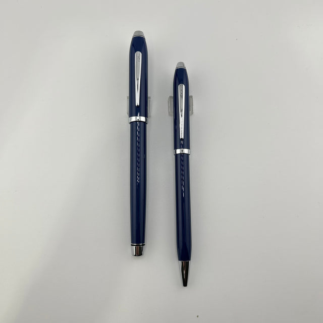 Cross Century Set Dark Blue - Ballpoint and Rollerball Pen - Chrome trim