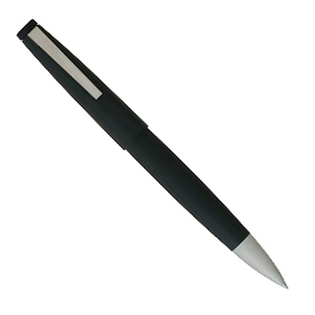The Lamy 2000*s large rounded barrel is constructed of durable Makrolon, with spring loaded clip in brushed stainless steel. The fountain pen is enhanced with a platinum-plated 14kt gold nib, available in M, F,XF & B, piston fill. A matching rollerball, ball pen, mechanical pencil (0.5mm or 0.7mm) and 4-color ball pen are also available.