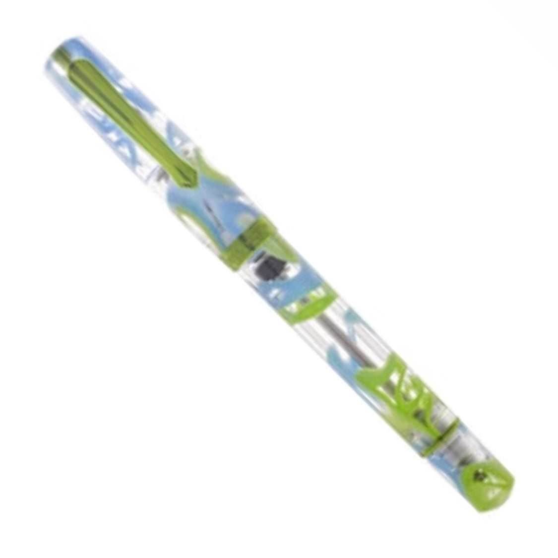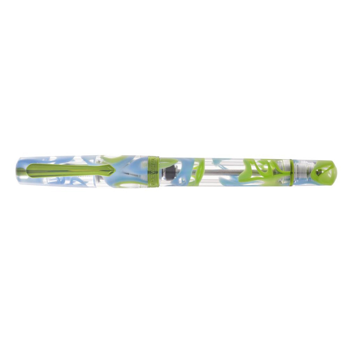 This product features vibrant shades of light blue and green, ideal for adding a fresh and refreshing touch to your collection. The specially plated green details complement the vivid design of the pen body. Additionally, it is equipped with a vacuum filling system for increased ink storage, making it perfect for daily use.
