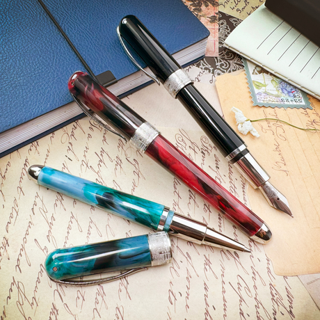Pineider Avatar UR Mini Red Blue Solidate Palladium Trim Fountain Pen