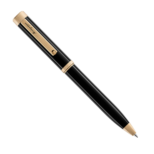 The Montegrappa Quattro fuses peerless mechanical performance with heavy metal trims, sapphire crystal and muscular presence. Viewed from any angle, it is a power pen to command any room. After many months of development, the big brother to the Montegrappa ZERO is ready for the fast lane. Meet the Montegrappa QUATTRO This bold new silhouette shares its modernist DNA with the ZERO, offering masculine proportions and increased power. The Montegrappa insignia is emblazoned on a diamond-cut steel clip designed for muscular pocket presence. This specially developed component uses CNC machining and hand-polished chamfers to lay down an important marker in pen design. The QUATTRO is made from black, high-density acrylic with heavy steel trims available in three ion-plated tints: palladium, yellow gold and ultra-black. A bold, stadium crown houses our Ambigram badge beneath sapphire crystal. Fountain pens are cartridge/converter and available in options of 14K gold (EF, F, M, B, Stub 1.1, Stub 1.5) or 14K gold flex (EF, F) filigree nib. Alongside fountain pens, rollerball and slimline ballpoint modes are delivered in premium packaging. Cartridge/converter fill.
