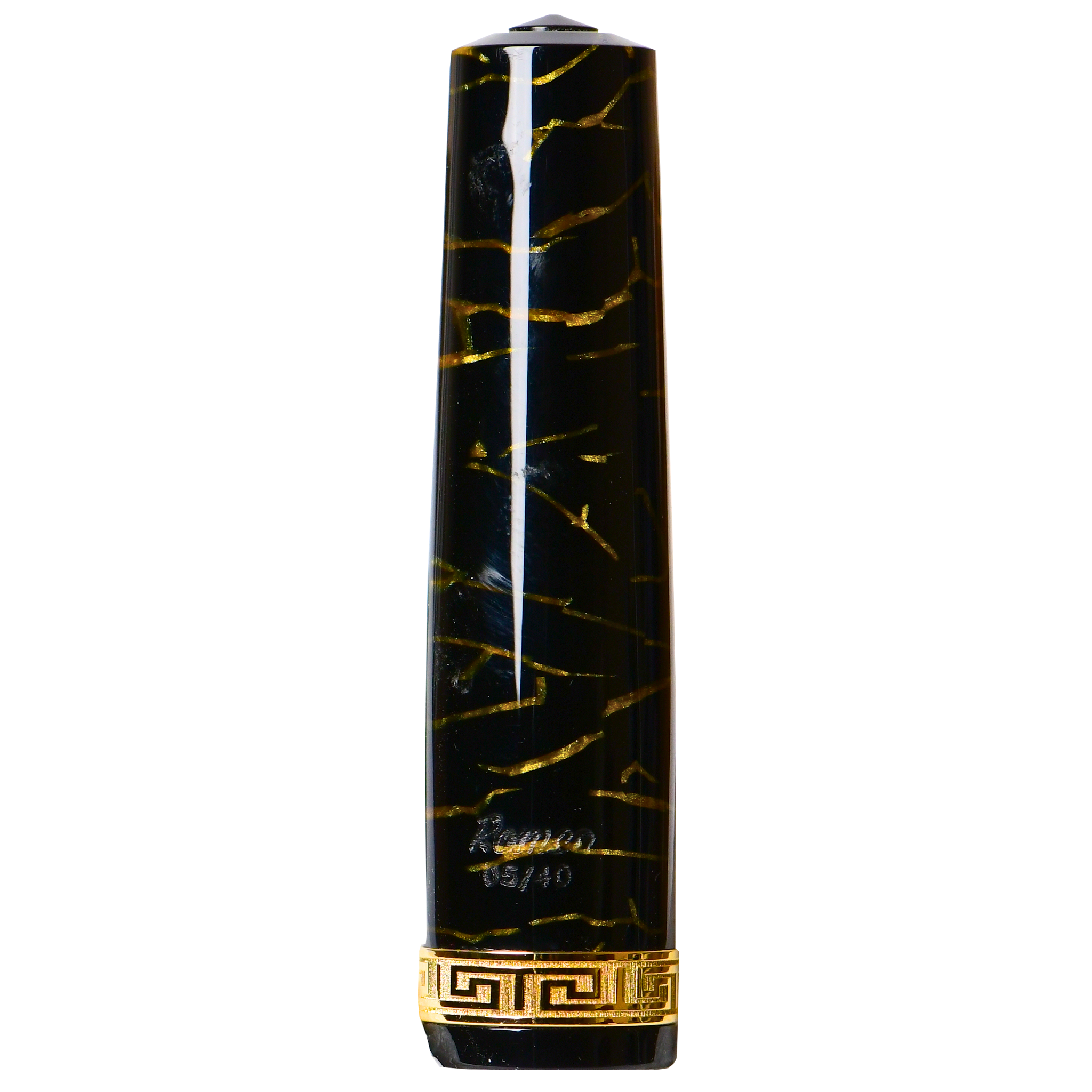 Each pen features a steel nib engraved with a special star-crossed lovers design, created specifically for this anniversary release. Nib options include Extra Fine Flex, Fine Flex, Fine, and Medium, offering both line variation and refined everyday writing. An uniquely engraved converter filling system completes the design, and each pen is individually numbered out of 40 per color- sold as a set.