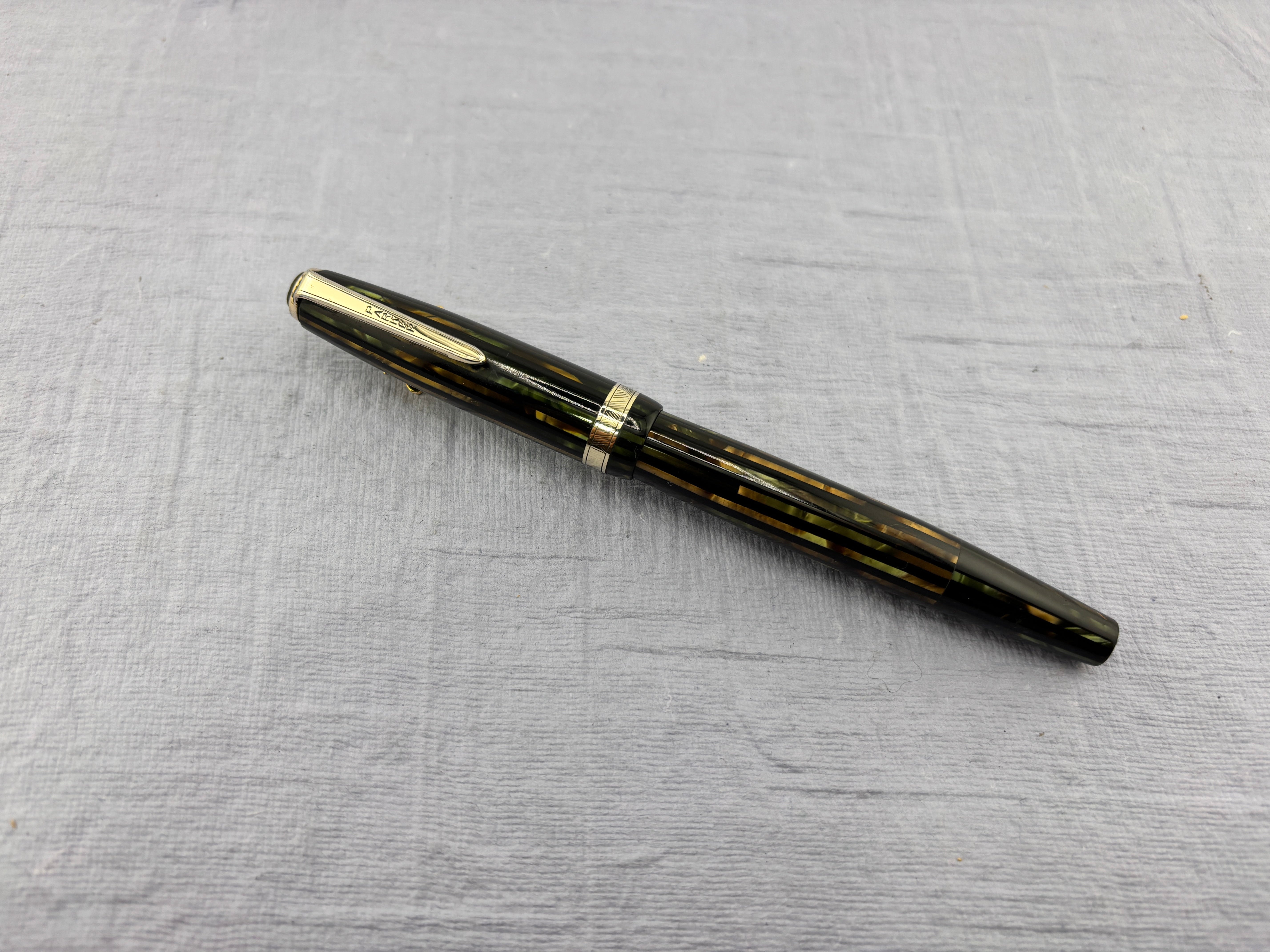 Parker (1944) Striped Green/Amber Duofold - Fountain Pen
