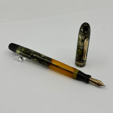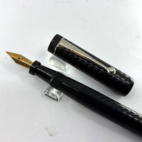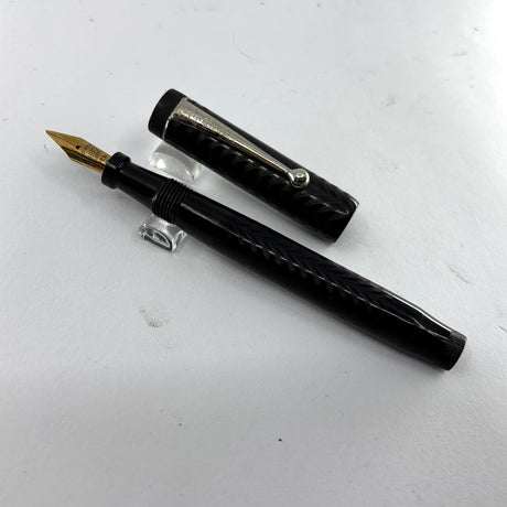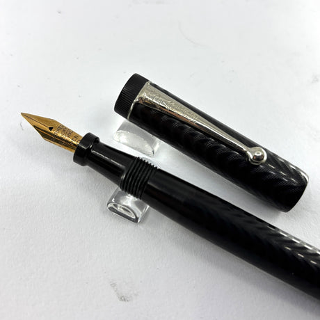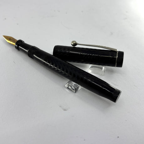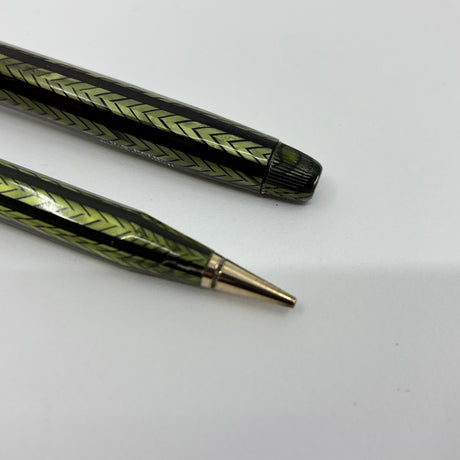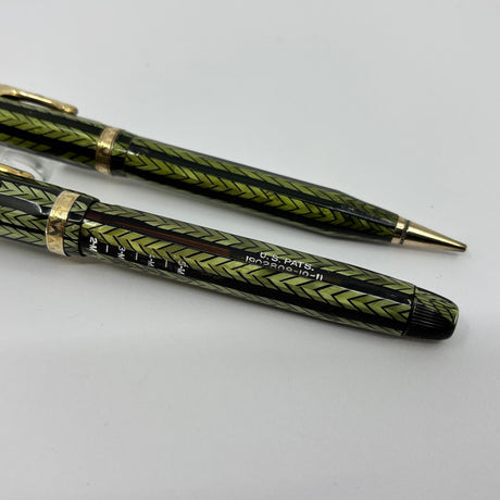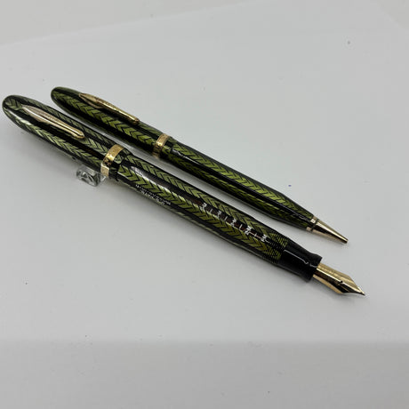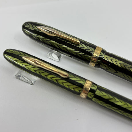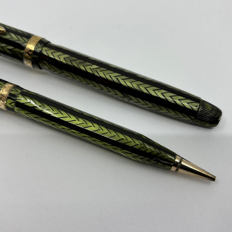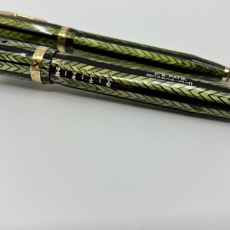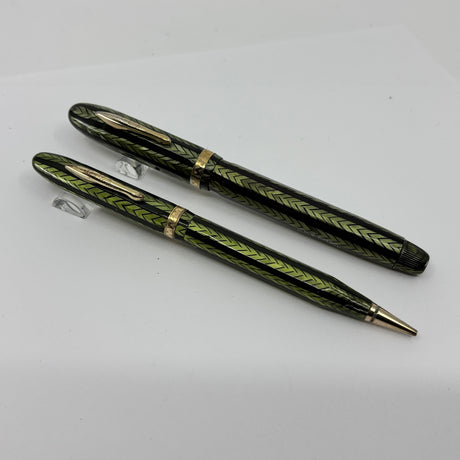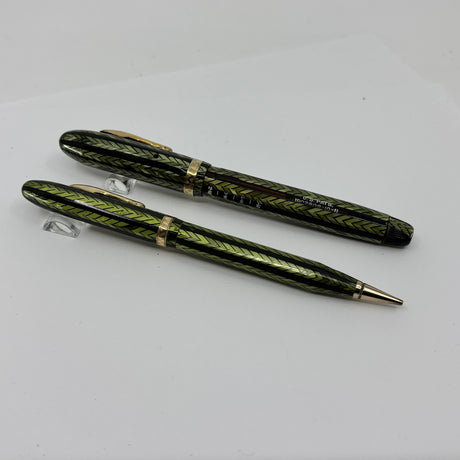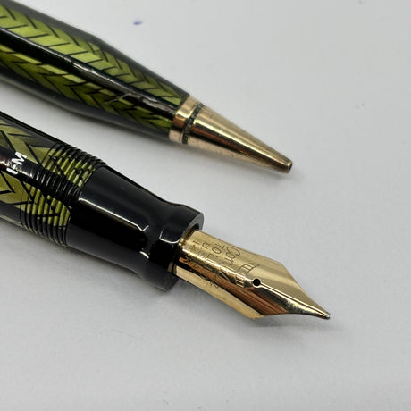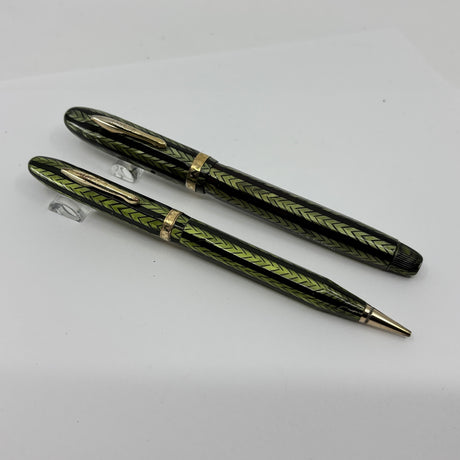 Conklin 5M Word Gauge Nozac SET Herringbone Green/Black Fountain Pen and Pencil - Circa 1935