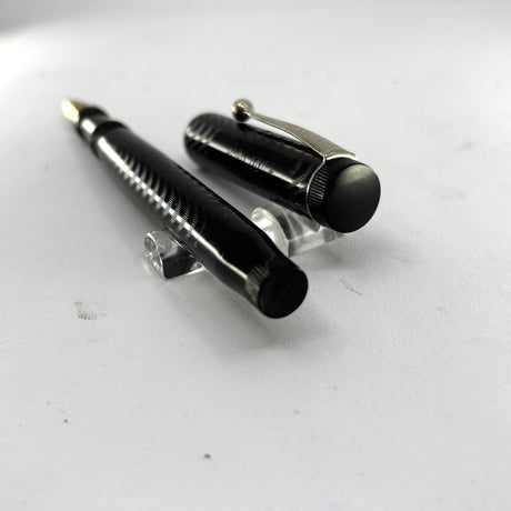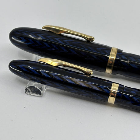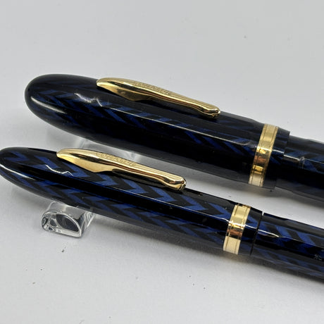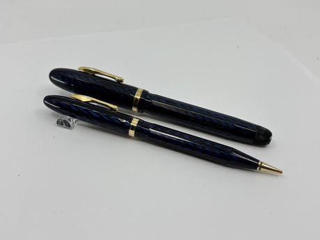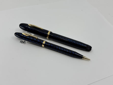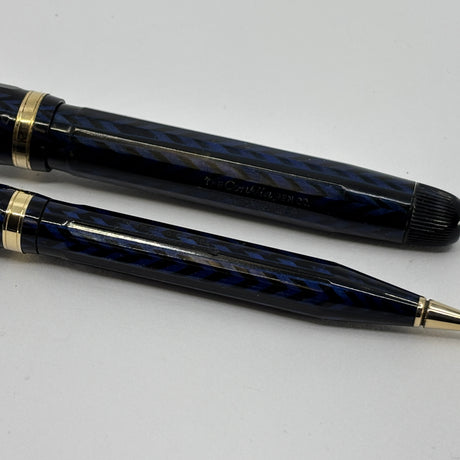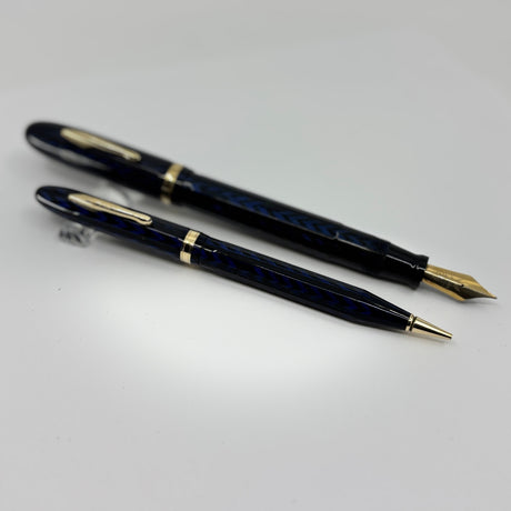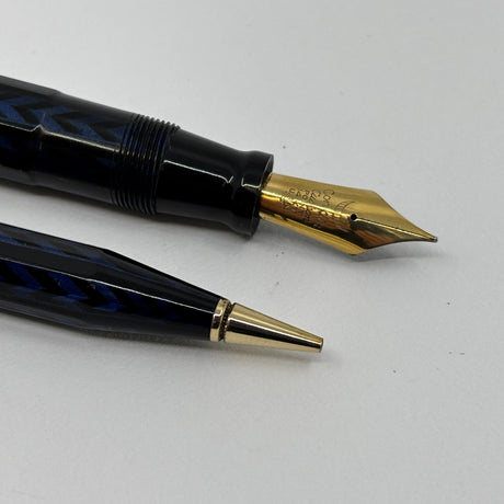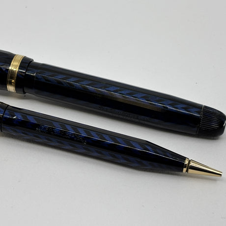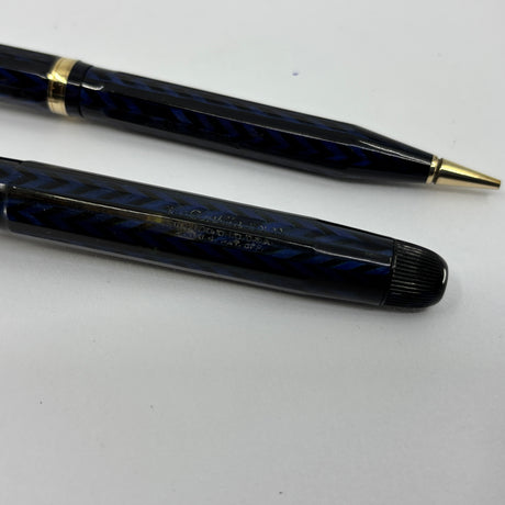 Conklin Largest Nozac SET Herringbone Blue/Black Fountain Pen and Pencil - Circa 1935