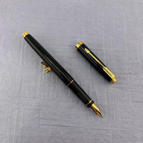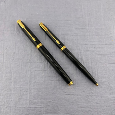parker 75 set black lacquer gold trim - Original box - New old stock ! - Fountain pen and Ball pen