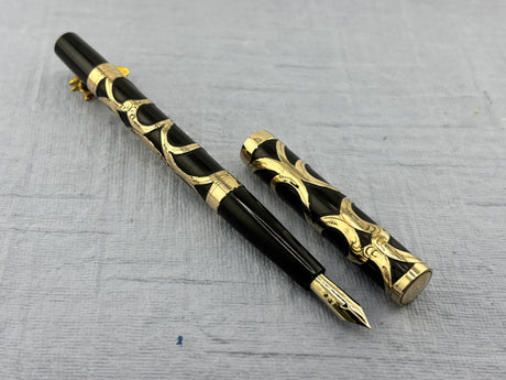 Parker Lucky Curve #16 Gold Filled Filigree Overlay Eyedropper - Fountain Pen