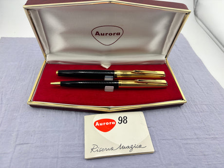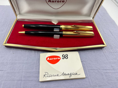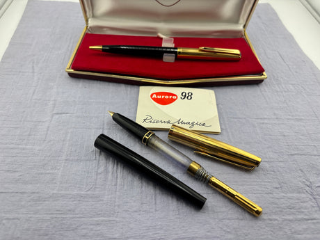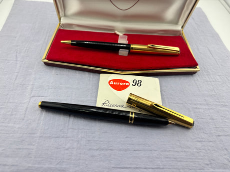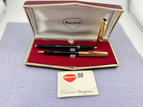 Aurora 98 Riserva Magica Black /gold cap SET - Fountain Pen and Ball Pen
