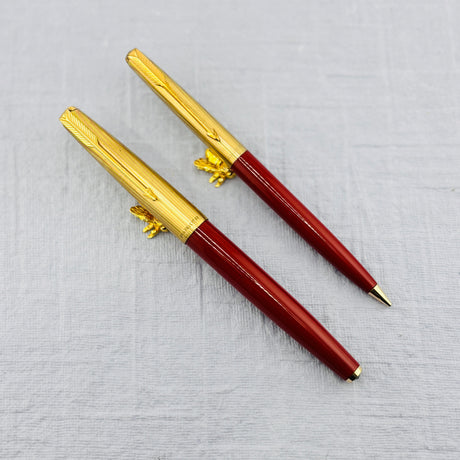 Parker 61 Set - Rage Red Rainbow Gold-Filled Cap USA - Fountain Pen and Pencil