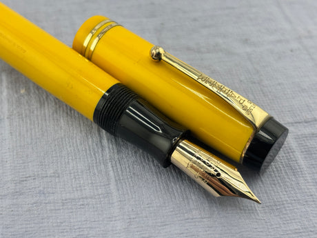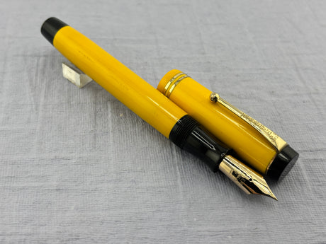 Parker Duofold Yellow Mandarin Desk Set Superb Art Deco Base - Fountain Pen