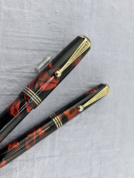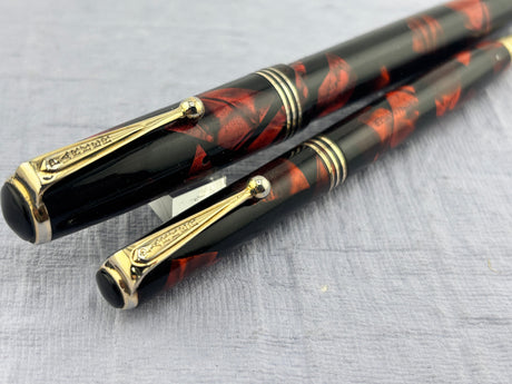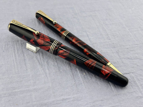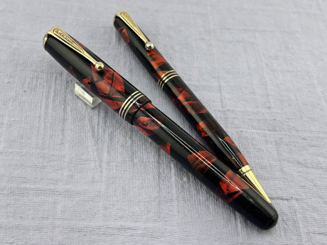 Parker 61 Set - Rage Red Rainbow Gold-Filled Cap USA - Fountain Pen and Pencil