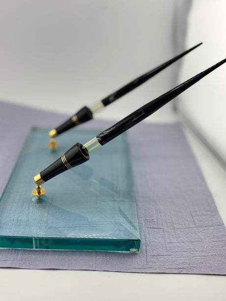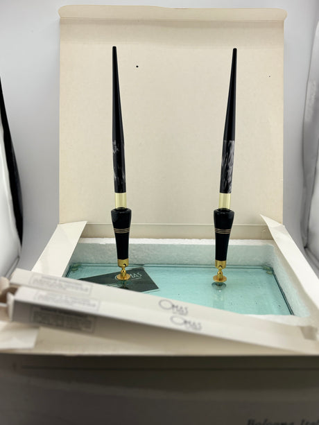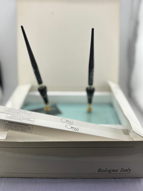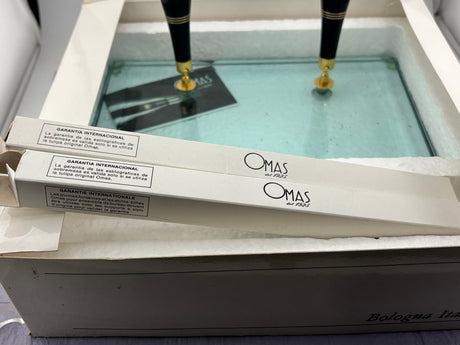 Omas wonderful desk set 2 pens Grigio perla celluloid circa 1975 New old stock RARE RARE