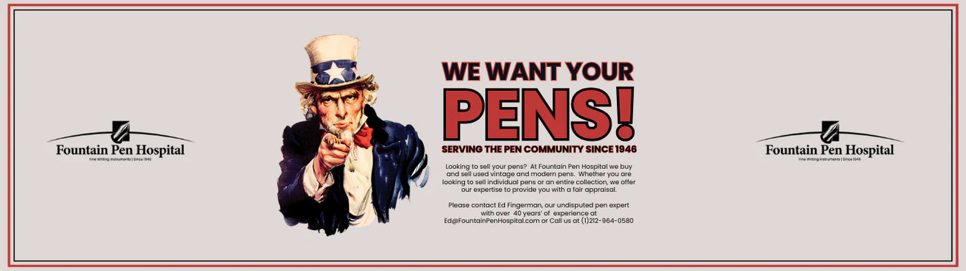 At Fountain Pen Hospital we buy and sell used vintage and modern pens. Whether you are looking to sell individual pens or an entire collection, we offer our expertise to provide you with a fair appraisal. Please contact Ed@FountainPenHospital.com or give us a call at (1)212-964-0580.