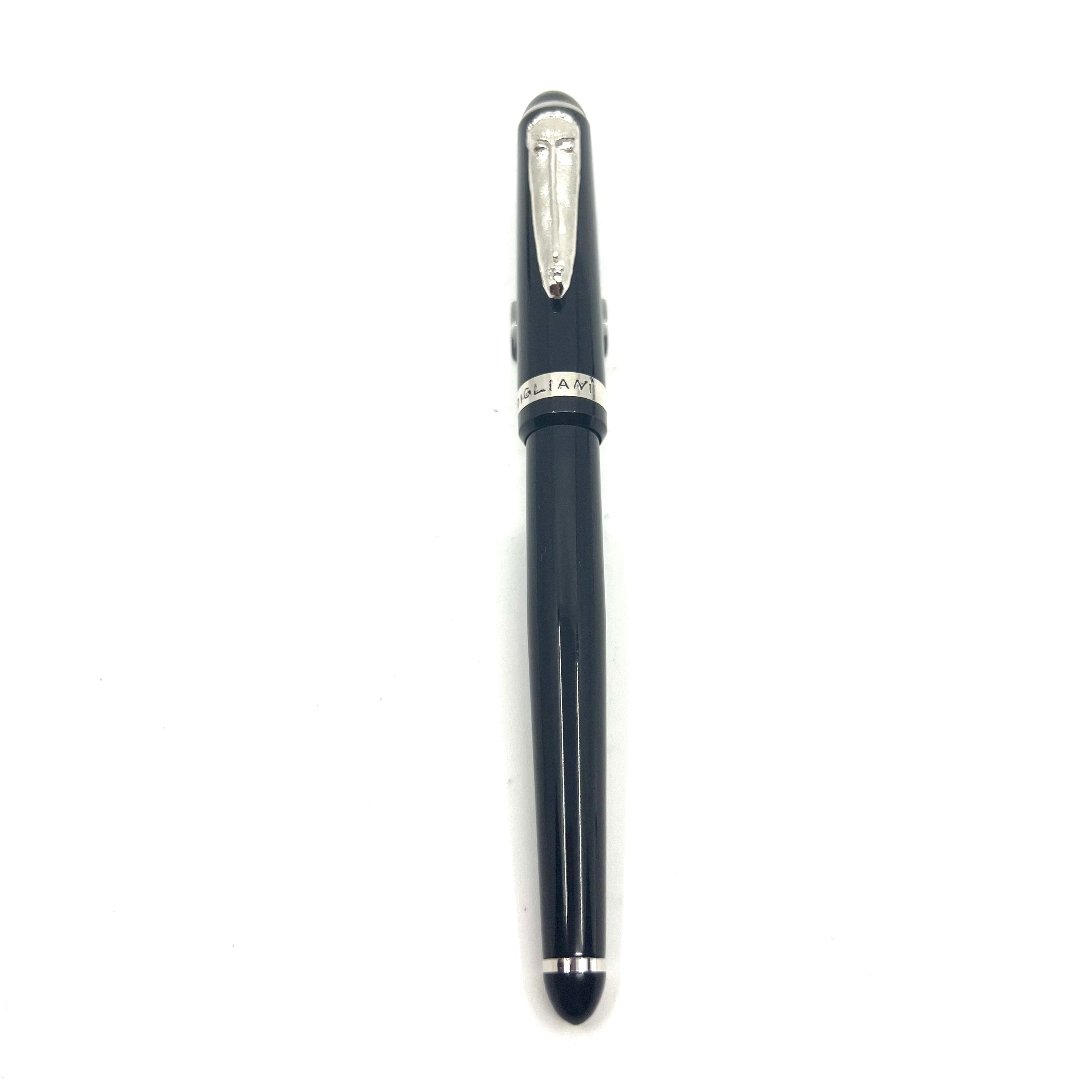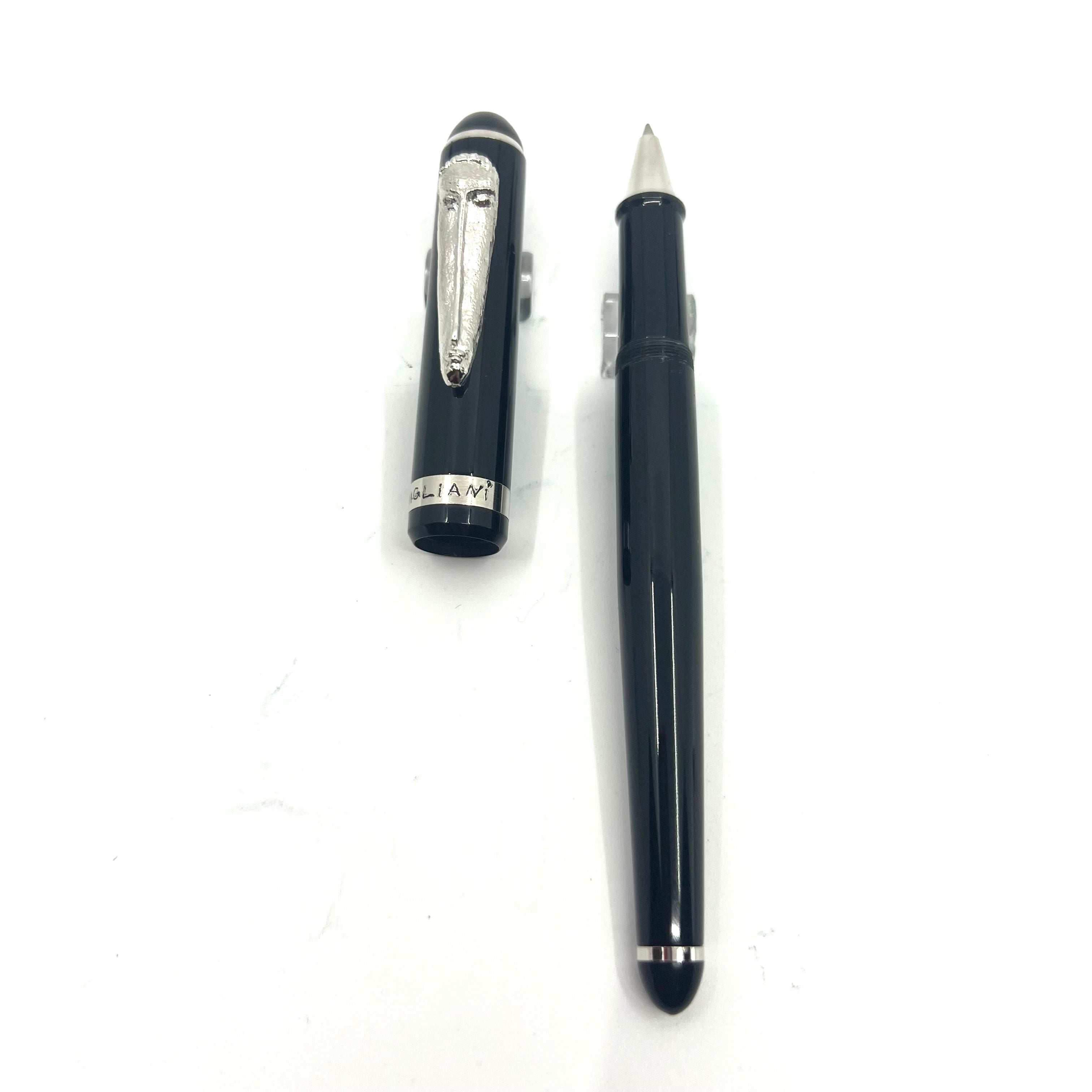Francois Yves Luthier Modiglinani II Black Rollerball honoring the Italian artist, Amedeo Modigliani - Limited Edition #0017 of 2300 - Black Resin Body - The Clip, which replicates Modigliani's "Head of Woman" limestone sculpture, is crafted from bronze and coated in Palladium - Original Box/Paperwork - 1994 - Mint - $195
