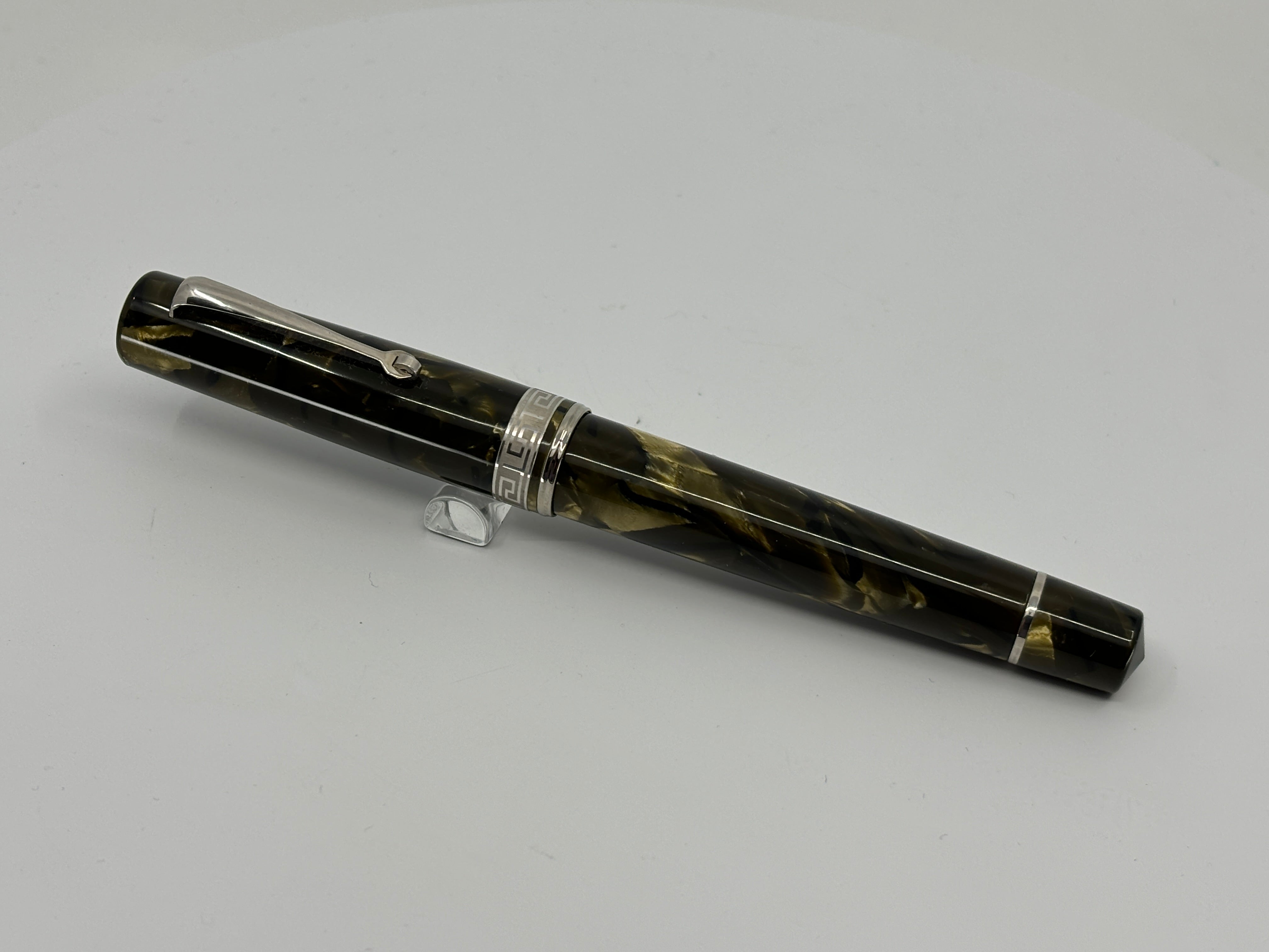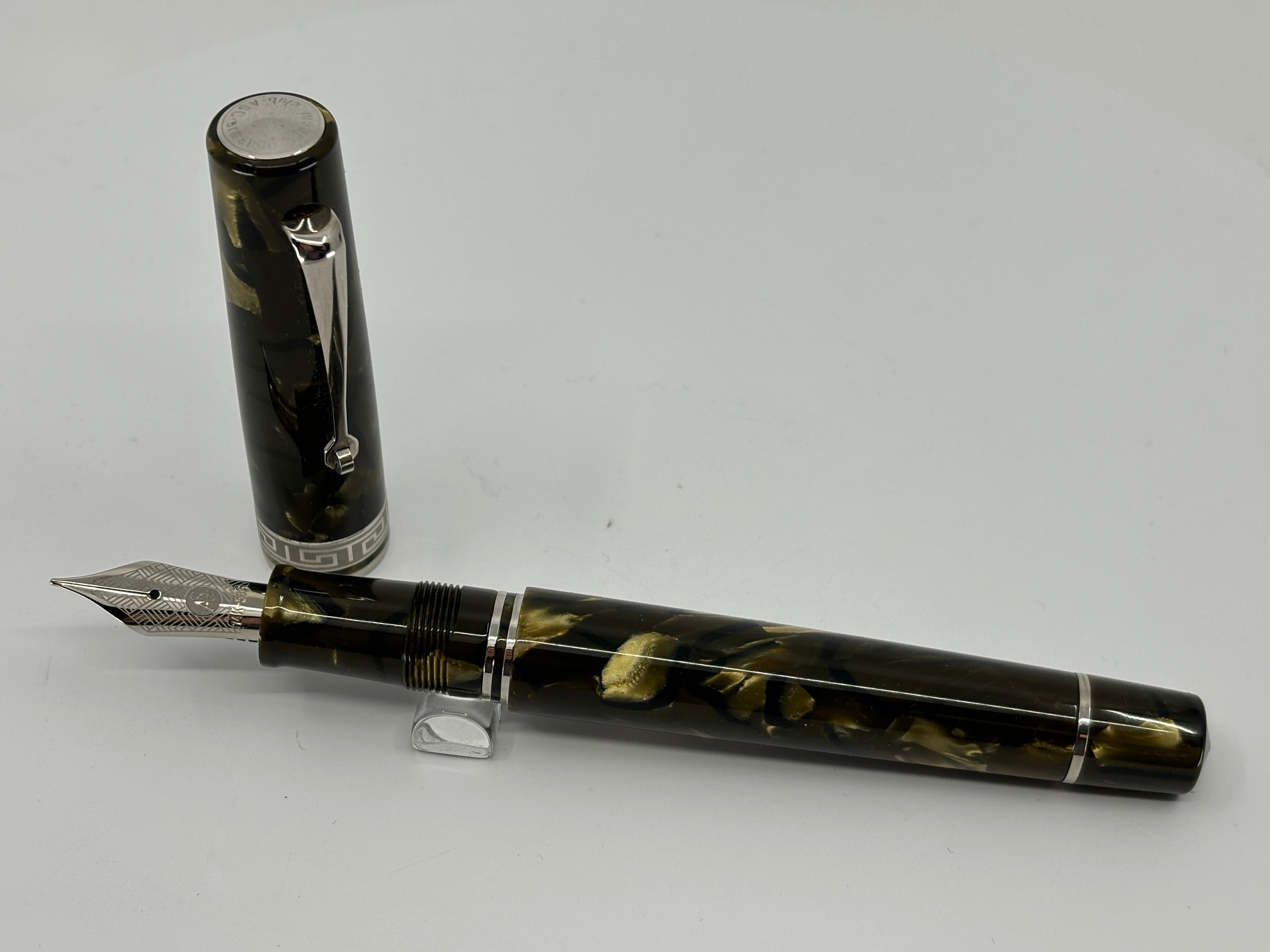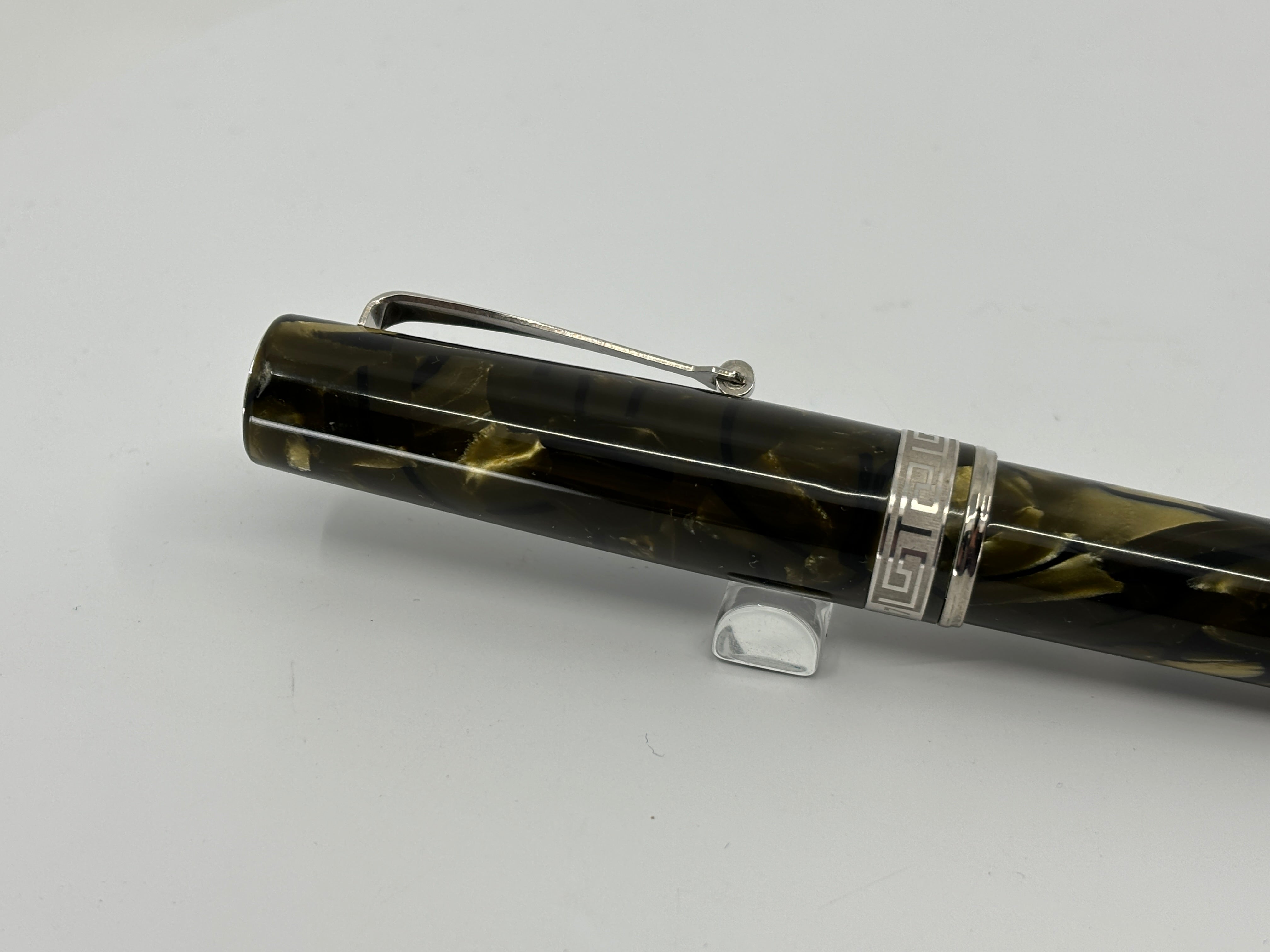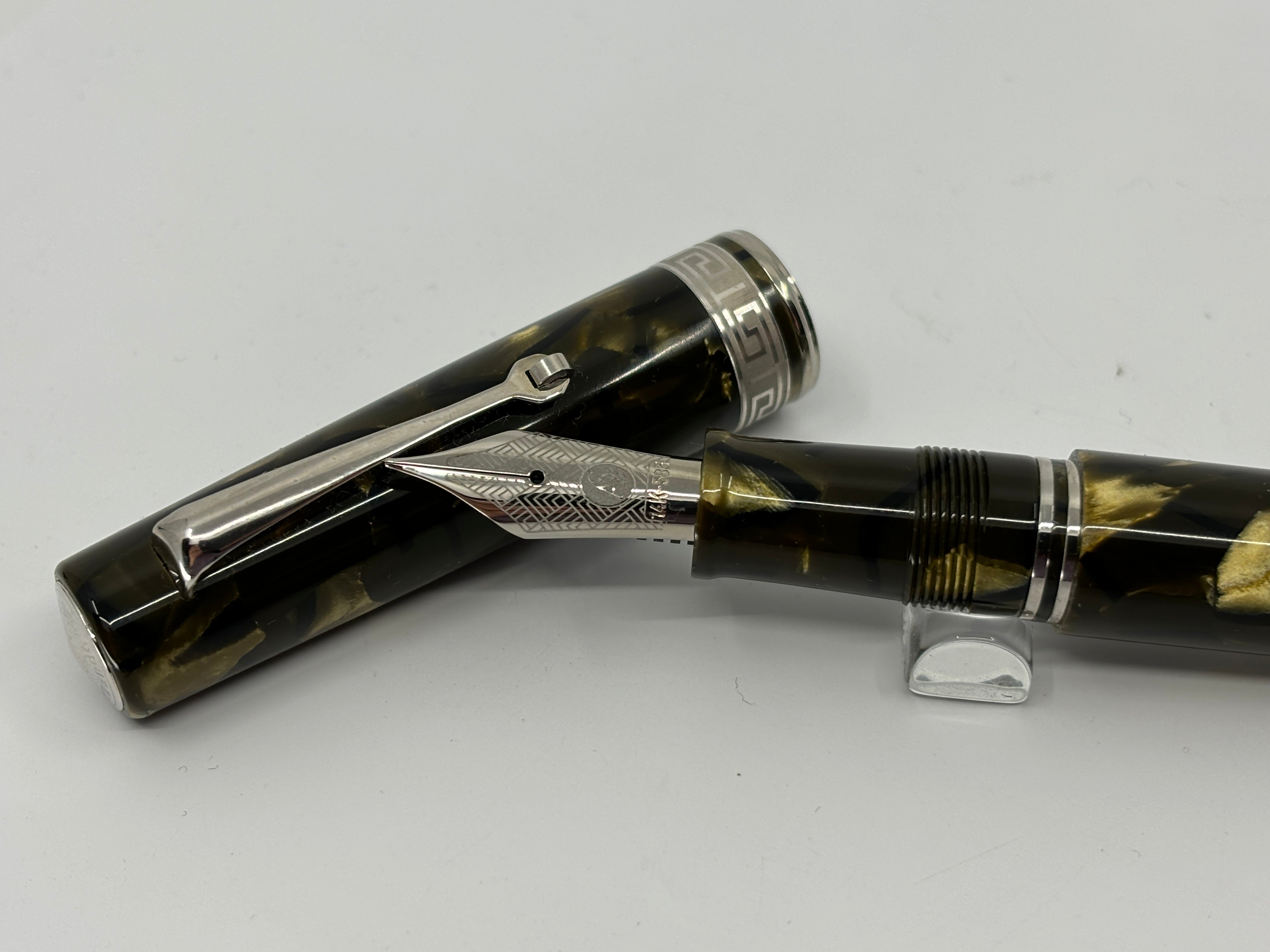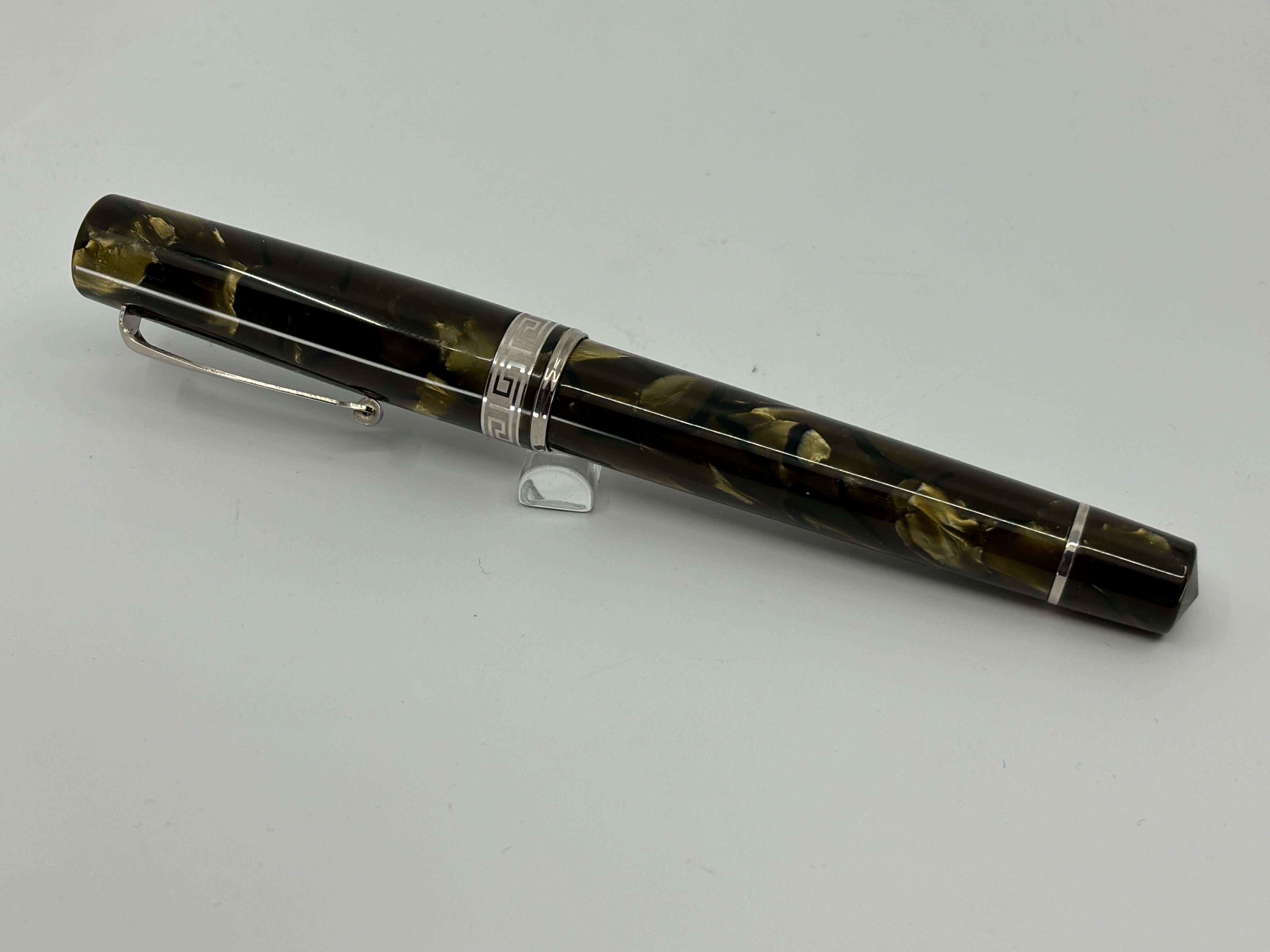 ASC Bologna Medio Saft Green Celluloid Fountain Pen (Made from Original Omas Celluloid used for Ercolessi LE in 1992) - Rhodium Trim - RARE - 2018 - Captured converter filling system - ASC Medium 14kt Gold Nib - (List Price: $745) -No Original Box - Mint - $450
