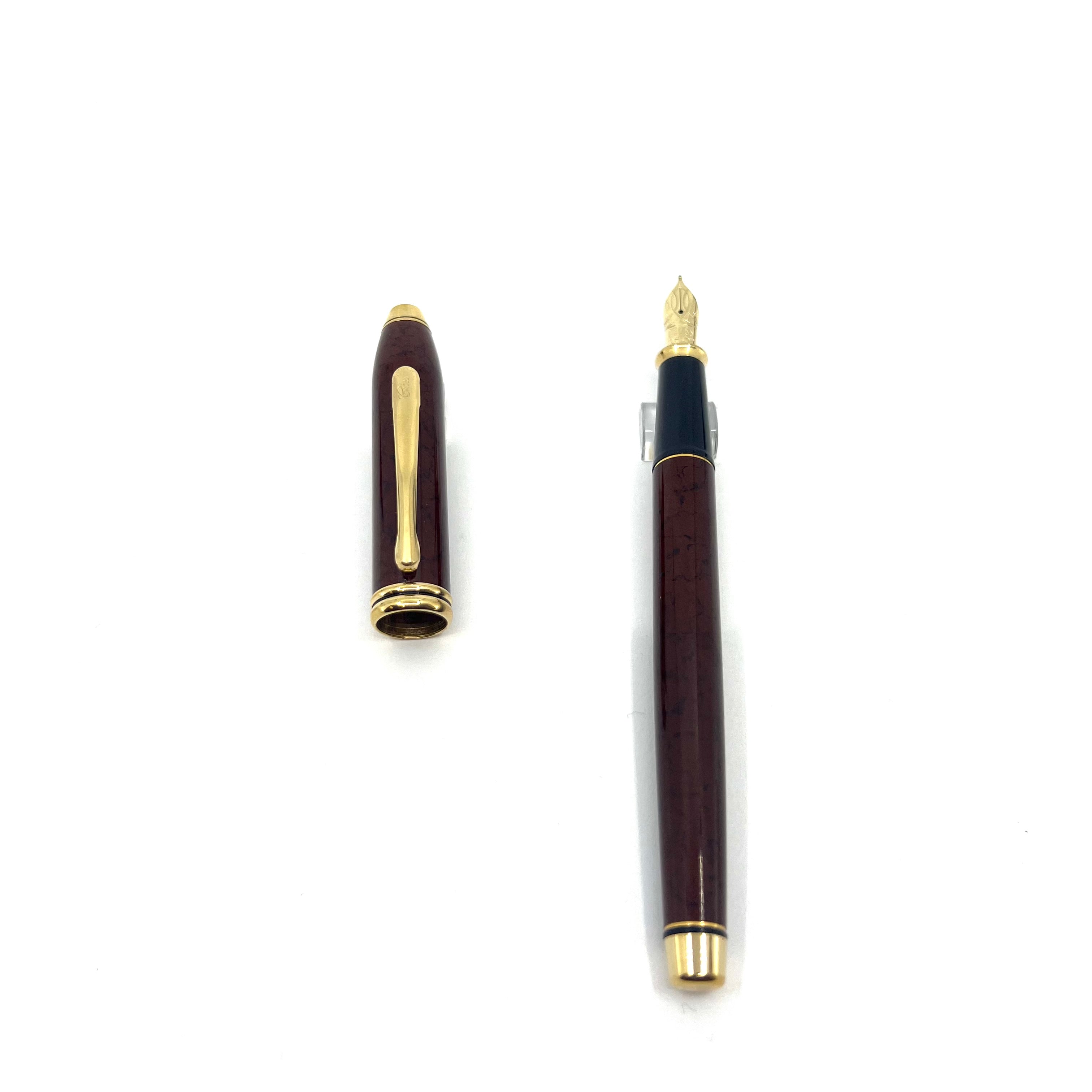 Cross Townsend Marbled Brown Lacquered Fountain Pen - Medium 14kt Gold Nib