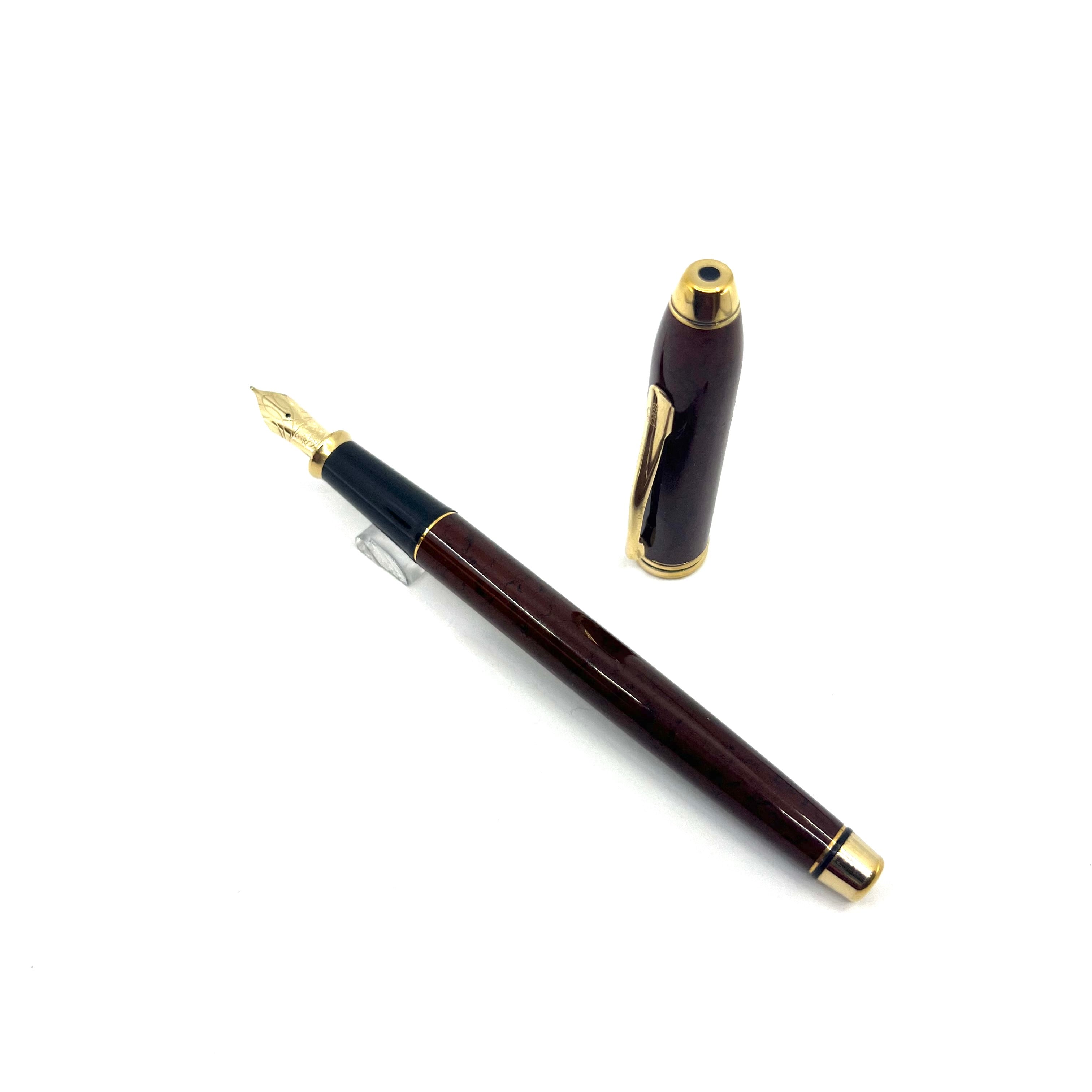 Cross Townsend Marbled Brown Lacquered Fountain Pen - Gold-