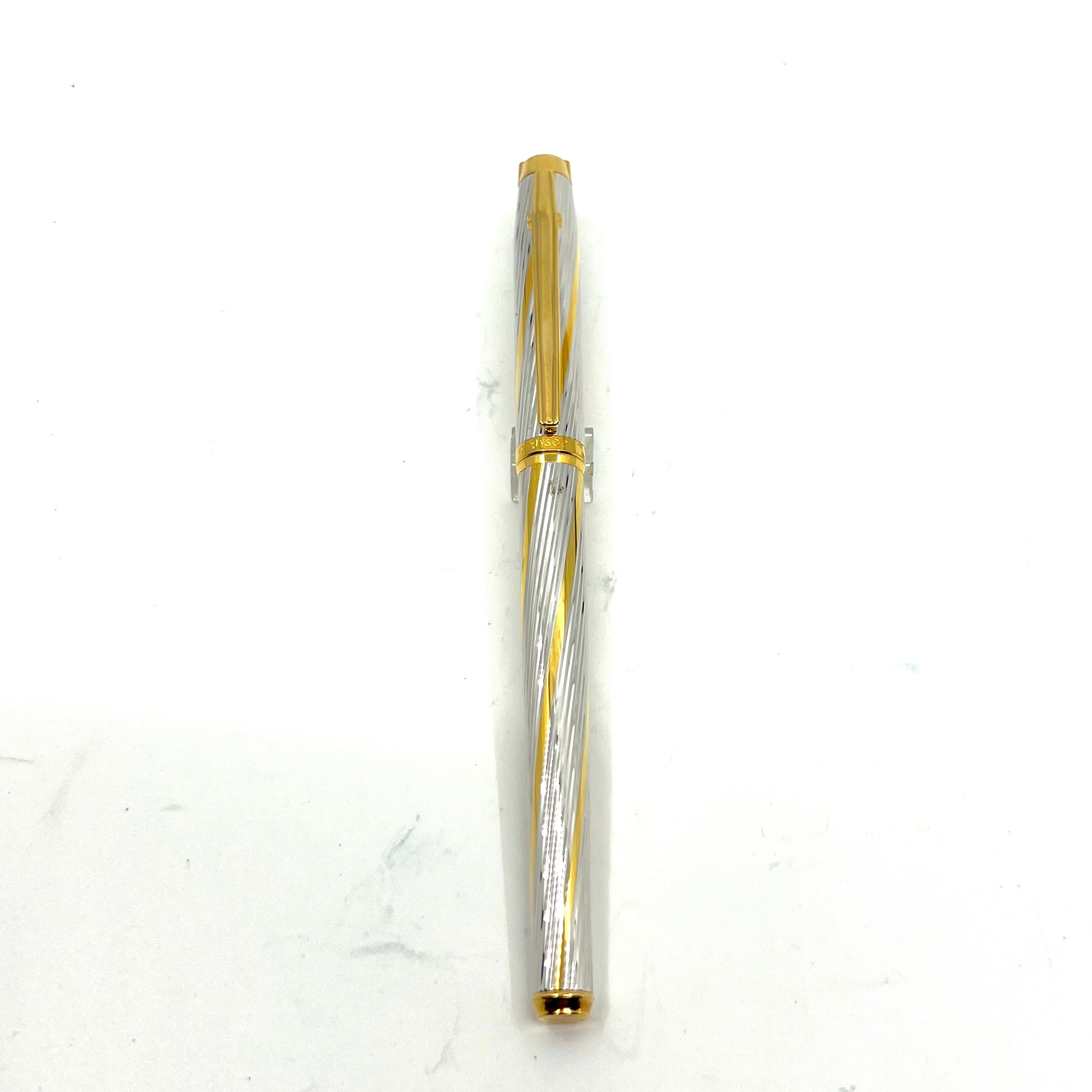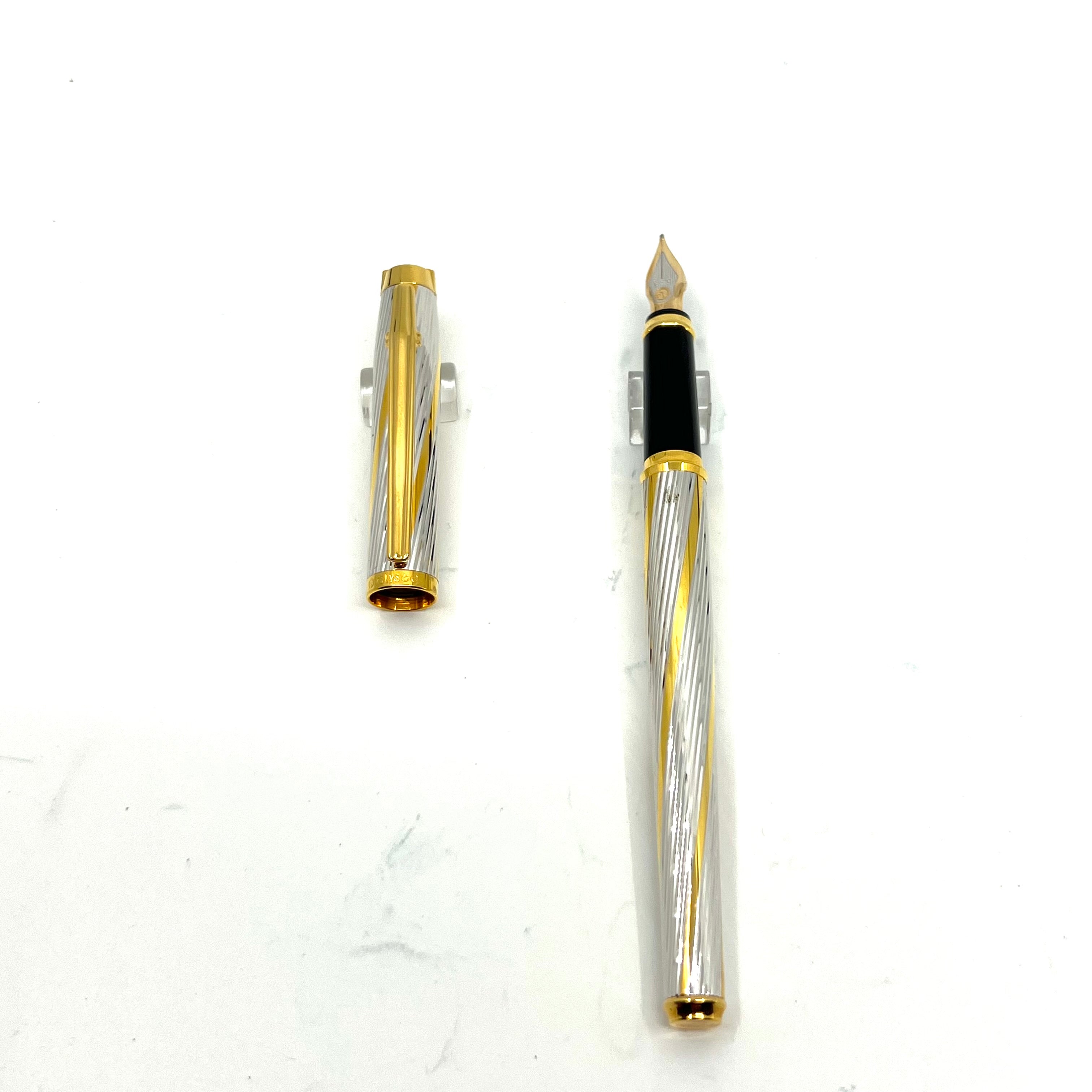 Elysee Finesse Bi-Coleur Swirl Fountain Pen - Platinum Plated Body with Gold-Plated Trim & Swirl Inlay - Cartridge/Converter Fill with the Converter Included - 1992 - Medium 18kt Gold Nib - Original Box - Mint - $295
