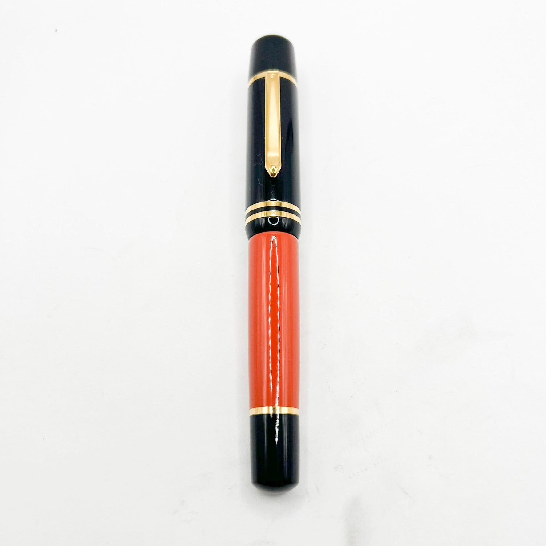 Bexley Tea Time MAGNUM Fountain Pen Made For Classic Pens - Orange & Black - Gold-Plated Trim - Cartridge/Converter Fill - Converter Included - Circa 2008 - Original Box - Barrel Engraved: "Bexley for Classic Pens Tea Time Magnum SE #06" - Virtually Mint - Semi-Flex Medium Two-Tone 18kt Gold Nib - $365