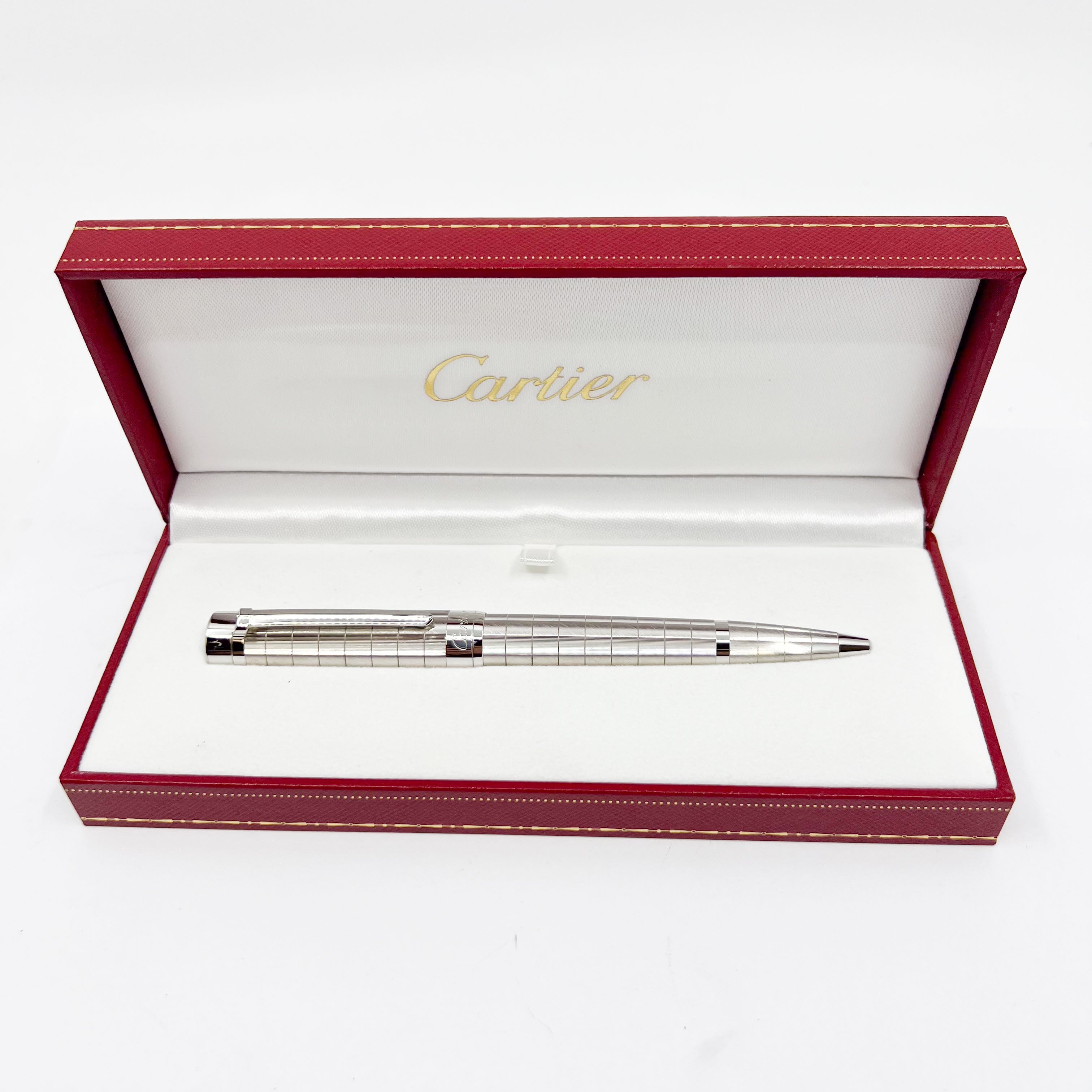 Cartier Pasha Platinum Plated Ballpoint Pen - Cross Hatch Design
