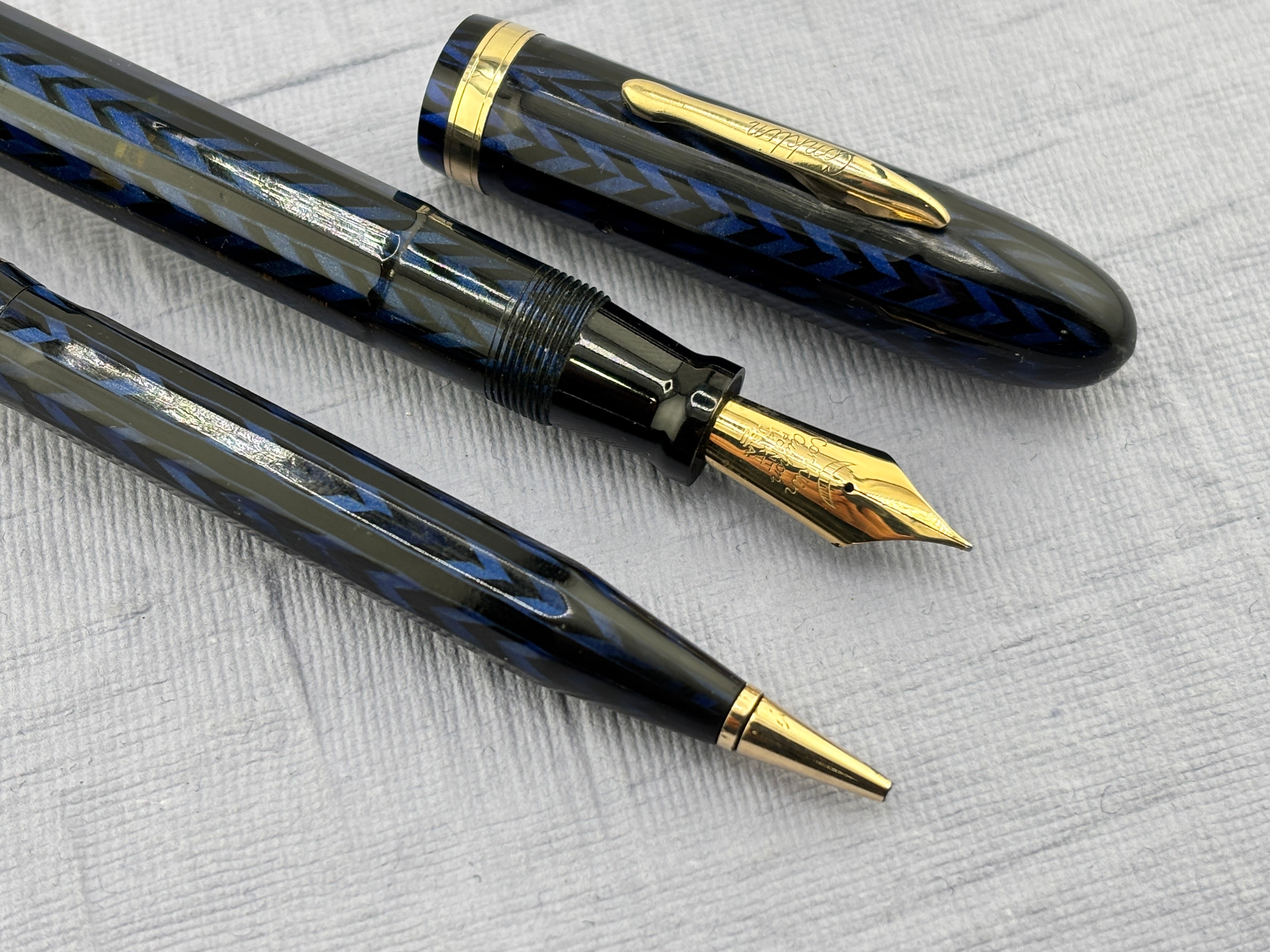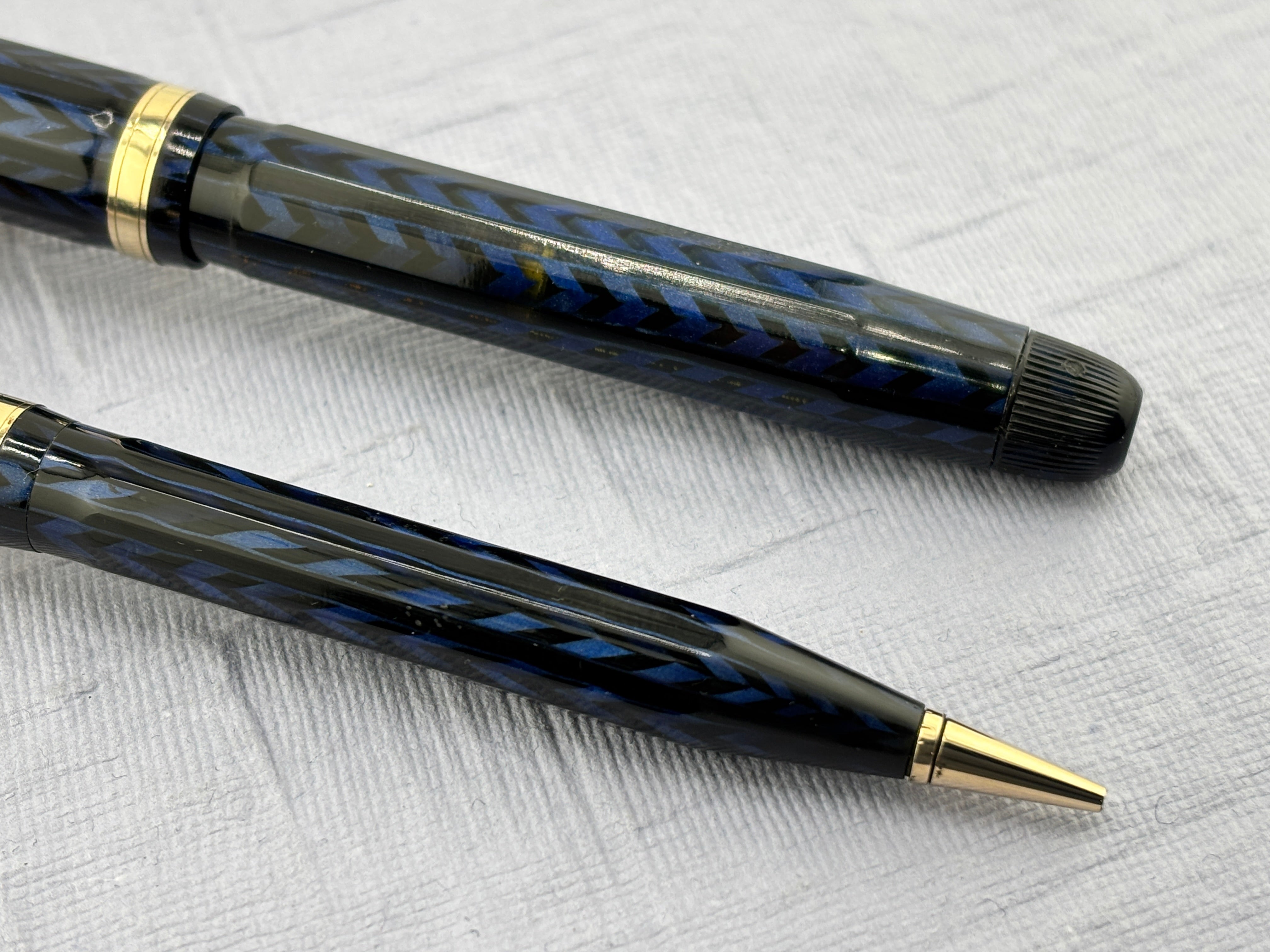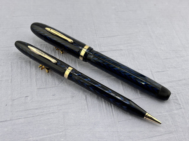 Conklin Nozac Oversize Herringbone Blue - Set Fountain Pen and Pencil