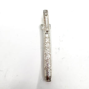 Yard-o-Led Pocket Sterling Silver Victorian Fountain Pen - Engraved Floral Design - CARTRIDGE FILL - Ca. 2010 - Fine 18kt Gold Nib - Original Box - Pen is 4 3/8 In.