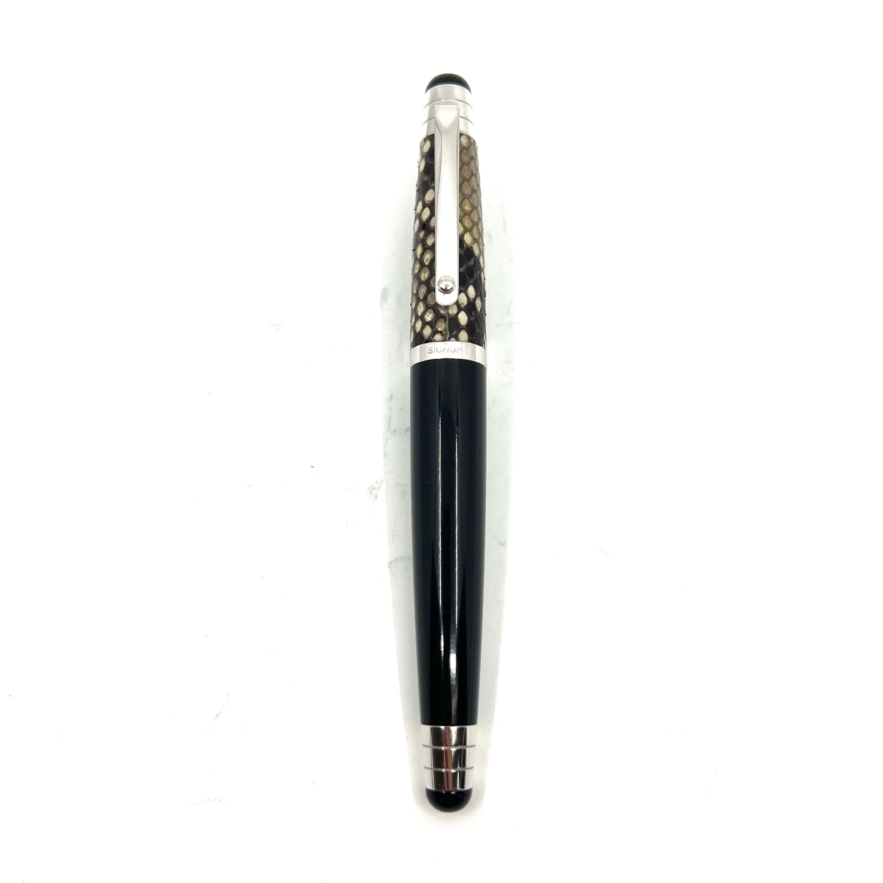 Signum (Italy) Nova Python - Black/Beige/Ivory Python Skin Fountain Pen - Rhodium Plated Trim - Cartridge/Converter Fill - Converter Included  -- No Original Box - Ca. 2002 - Medium 18kt Gold Nib - Near Mint -  $295