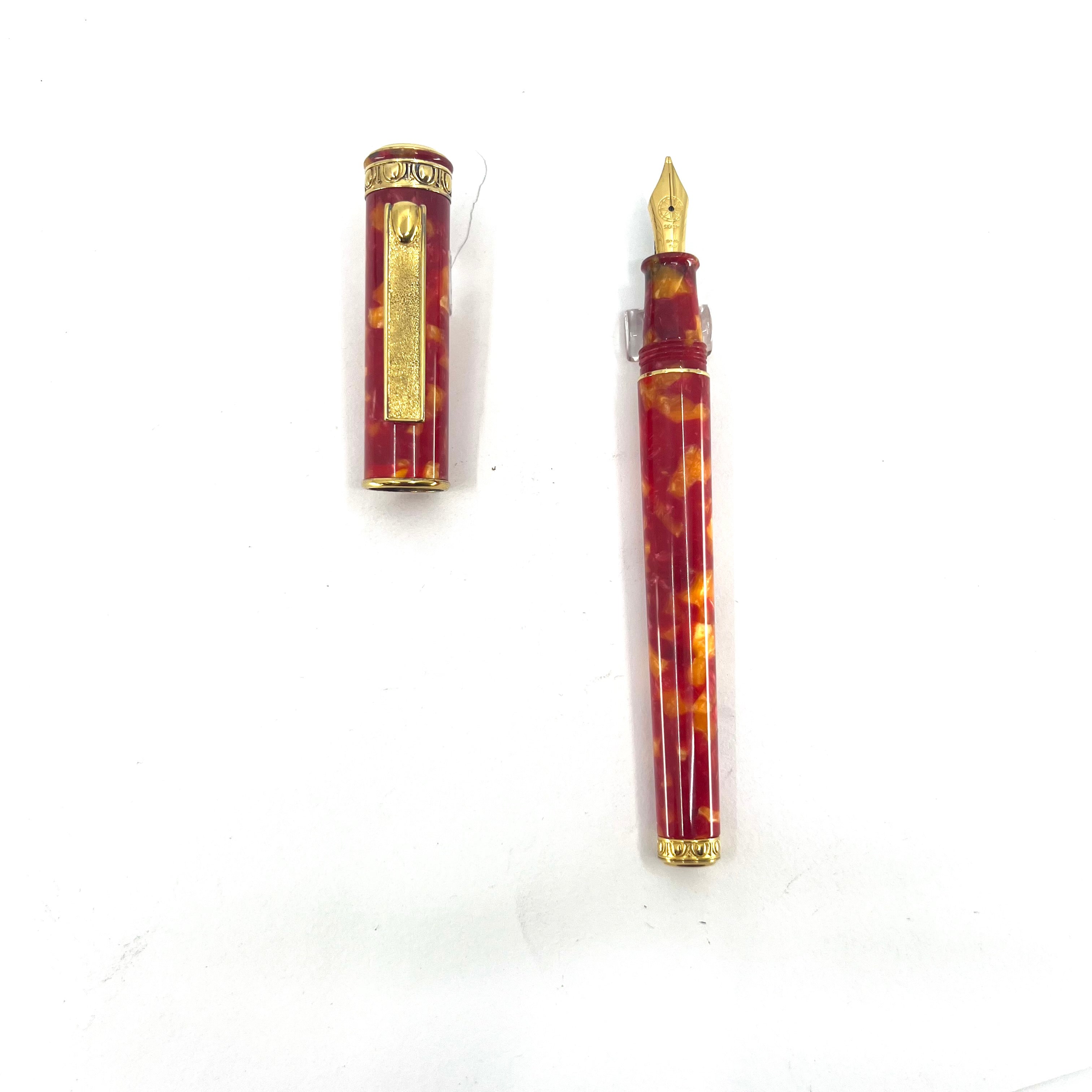 Signum (Italy) Lustrous Marbled Red & Orange Fountain Pen - Broad 18kt Gold Nib