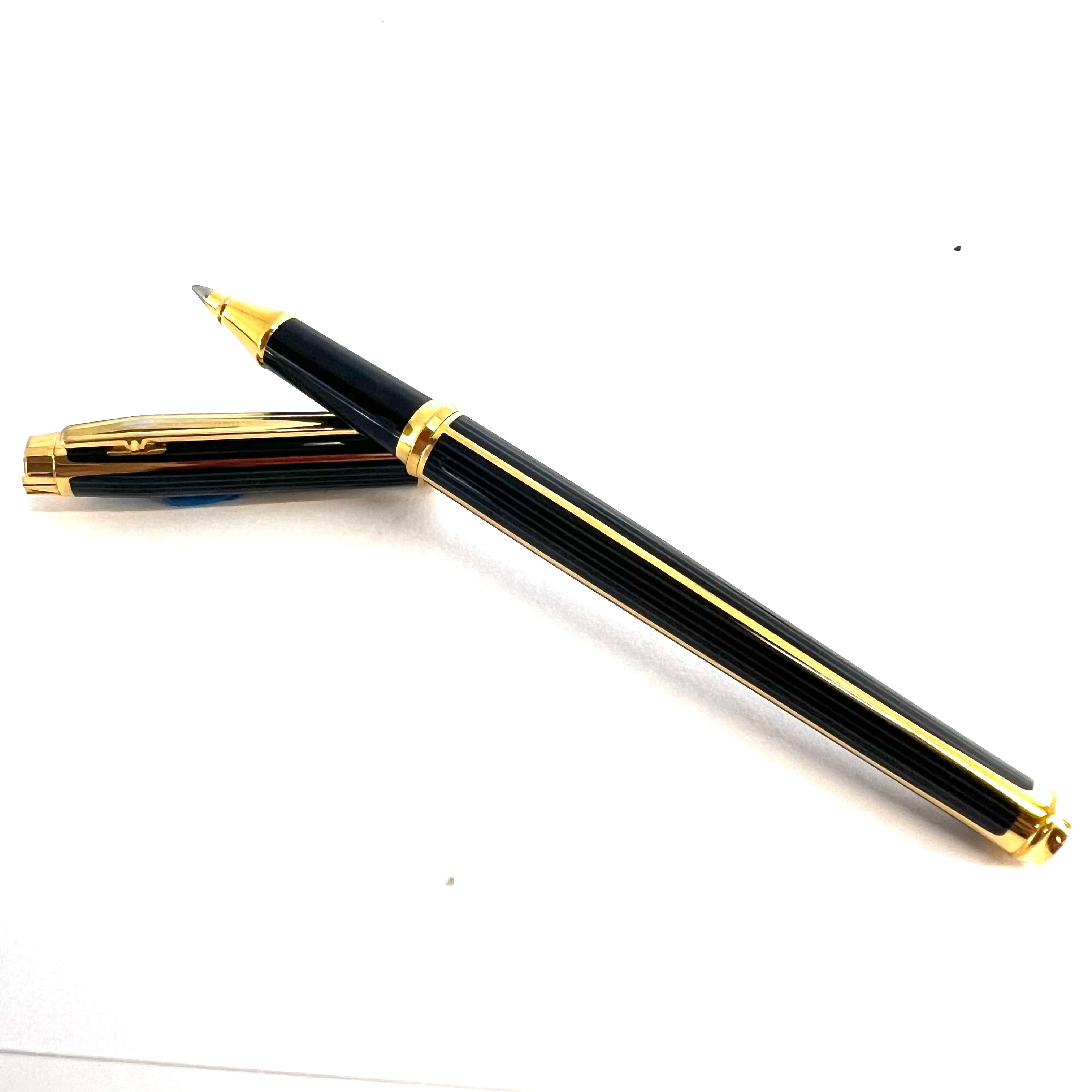 Elysee Elegant Parthenon Classique Black Lacquered/Gold-Plated Striped Rollerball - Very High Quality - Original Box - 1991 - Mint - $215