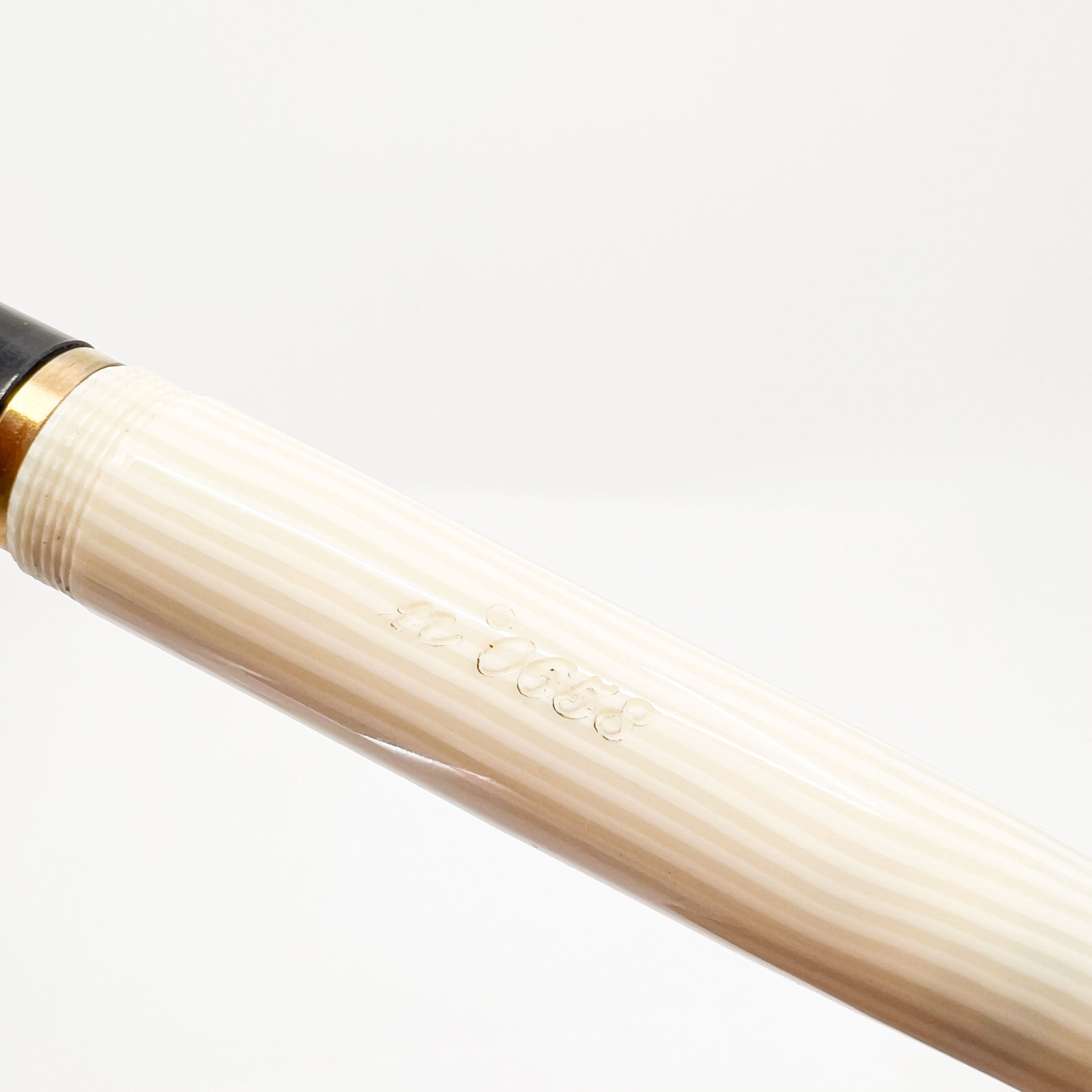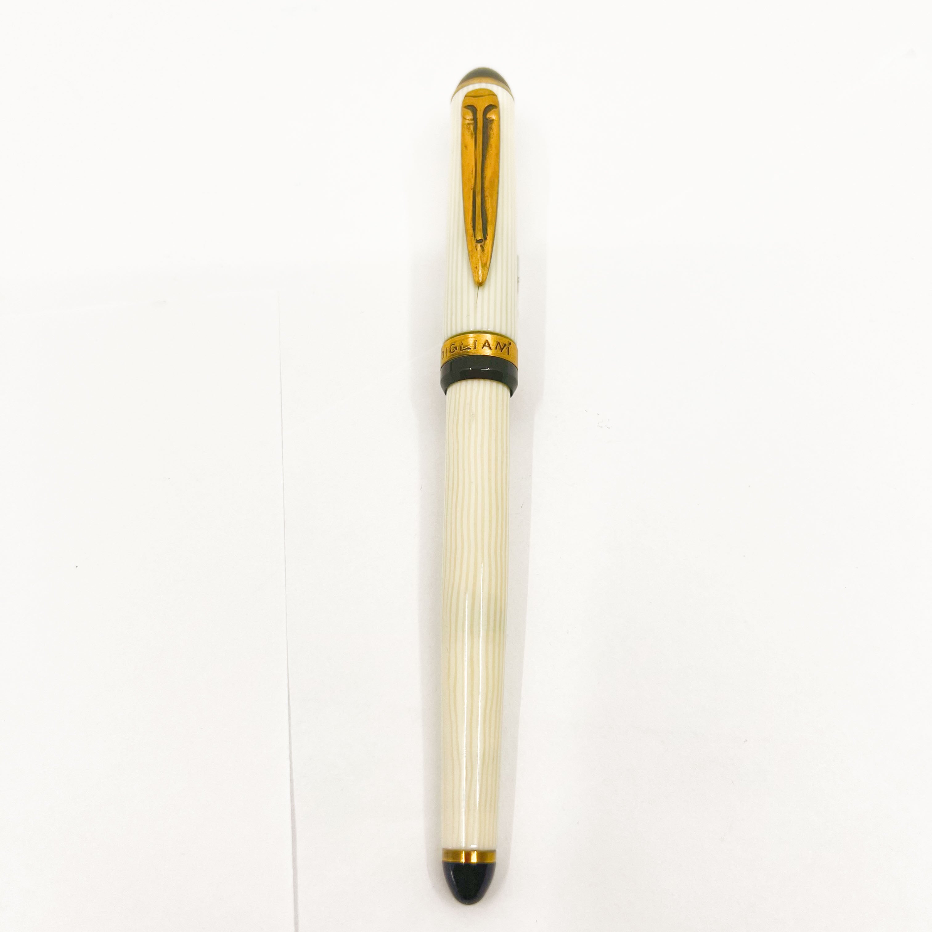Francois Yves Luthier Modigliani White Fountain Pen honoring the Italian artist, Amedeo Modigliani - Limited Edition #0658 of 2300 - White Lined Resin Body - Clip is a replication of Modigliani's "Head of Woman" limestone sculpture, crafted from bronze - Cartridge/Converter Fill - Converter Included - No Original Box - Medium 18kt Gold Nib - Mint - $350