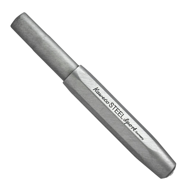 The Kaweco STEEL Sport is a writing instrument worthy of a heavy-duty, functional everyday carry. This stainless steel writing instrument has an impressive weight and feel in hand. The brushed texture of the steel has a wonderful tactile sensation. The Sport collection starts off pocket-sized, but packs a punch in writing quality. The cap of the fountain pen and rollerball posts deeply on the barrel, extending the pen to a comfortable size.
