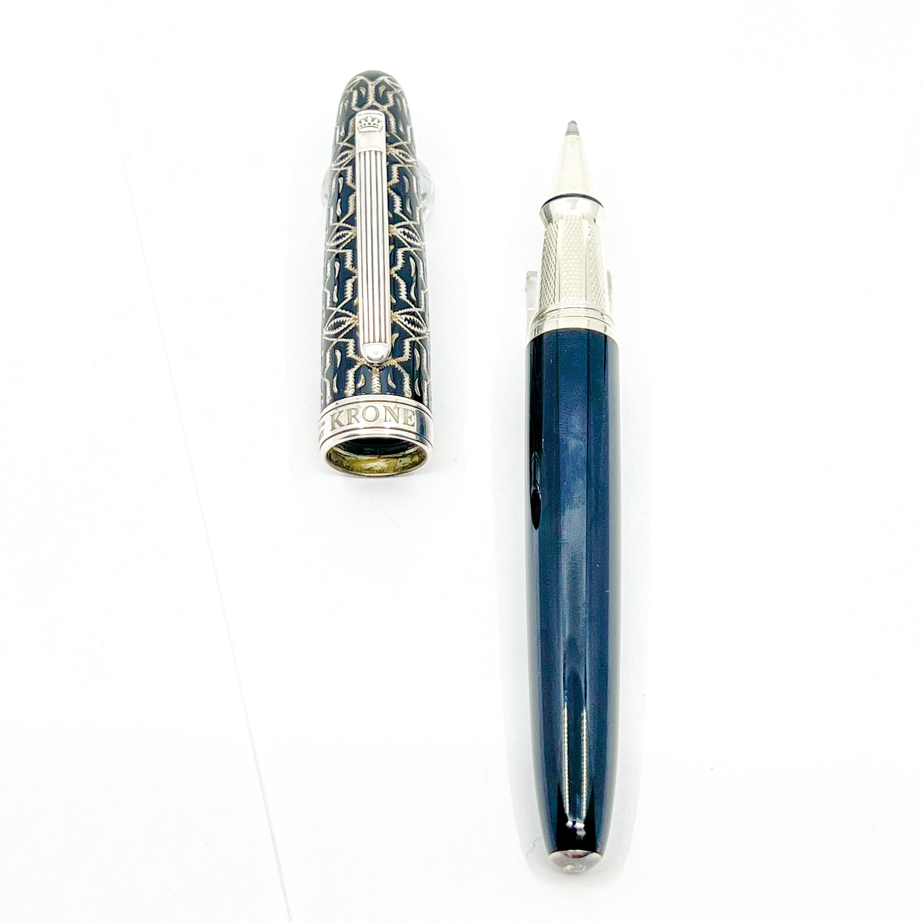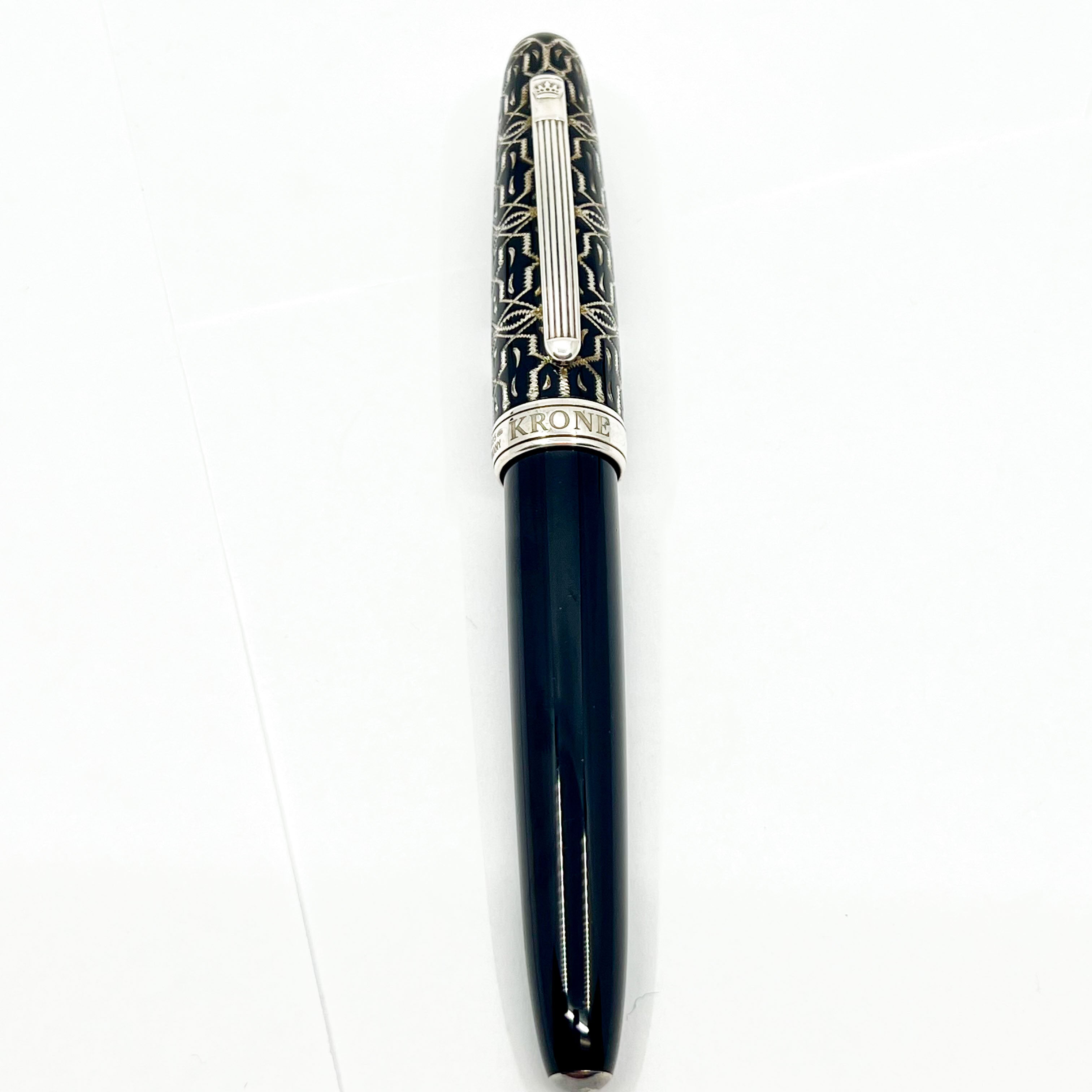 Krone - 2005 - Monarch Limited Edition Rollerball #46/888 - Black Enamelled Body Over Sterling Silver - Diamond Cut Cap In Intricate Design Reveals The Underlying Sterling Silver - No Original Box - Near Mint - $450
