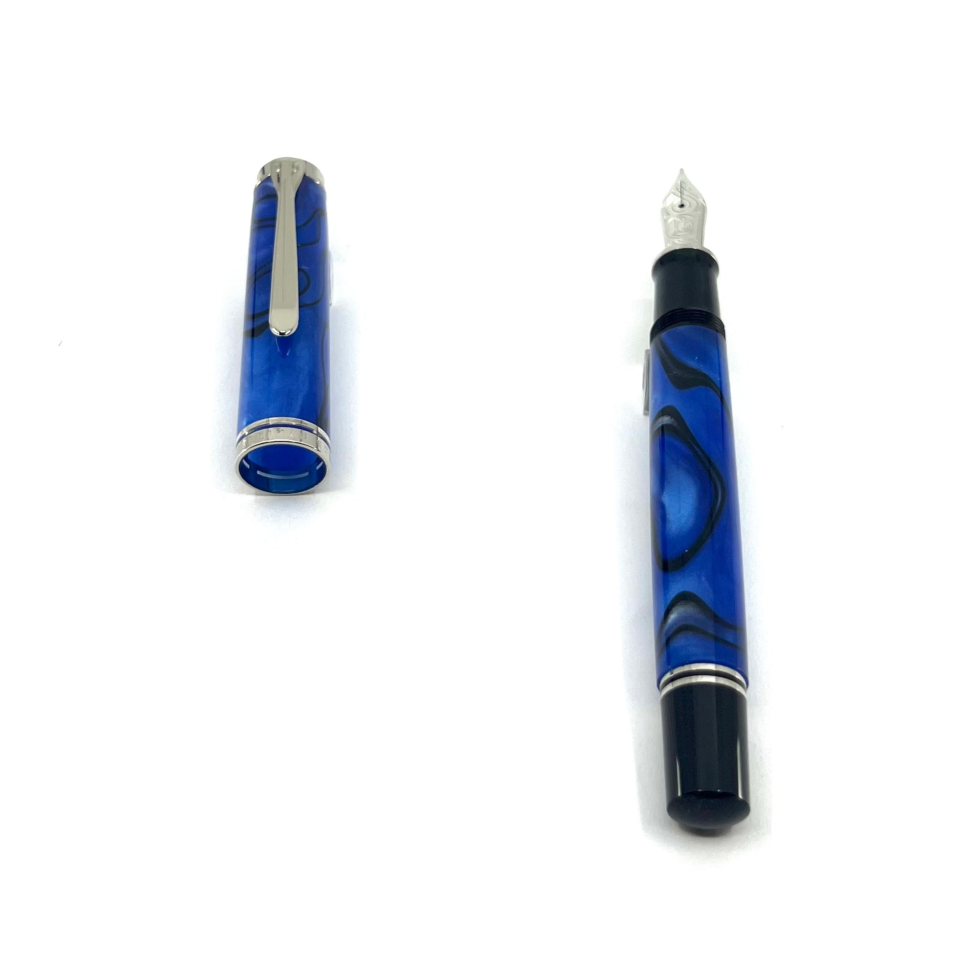 of Blue with Black Streaking - Platinum Plated Trim - Piston Fill