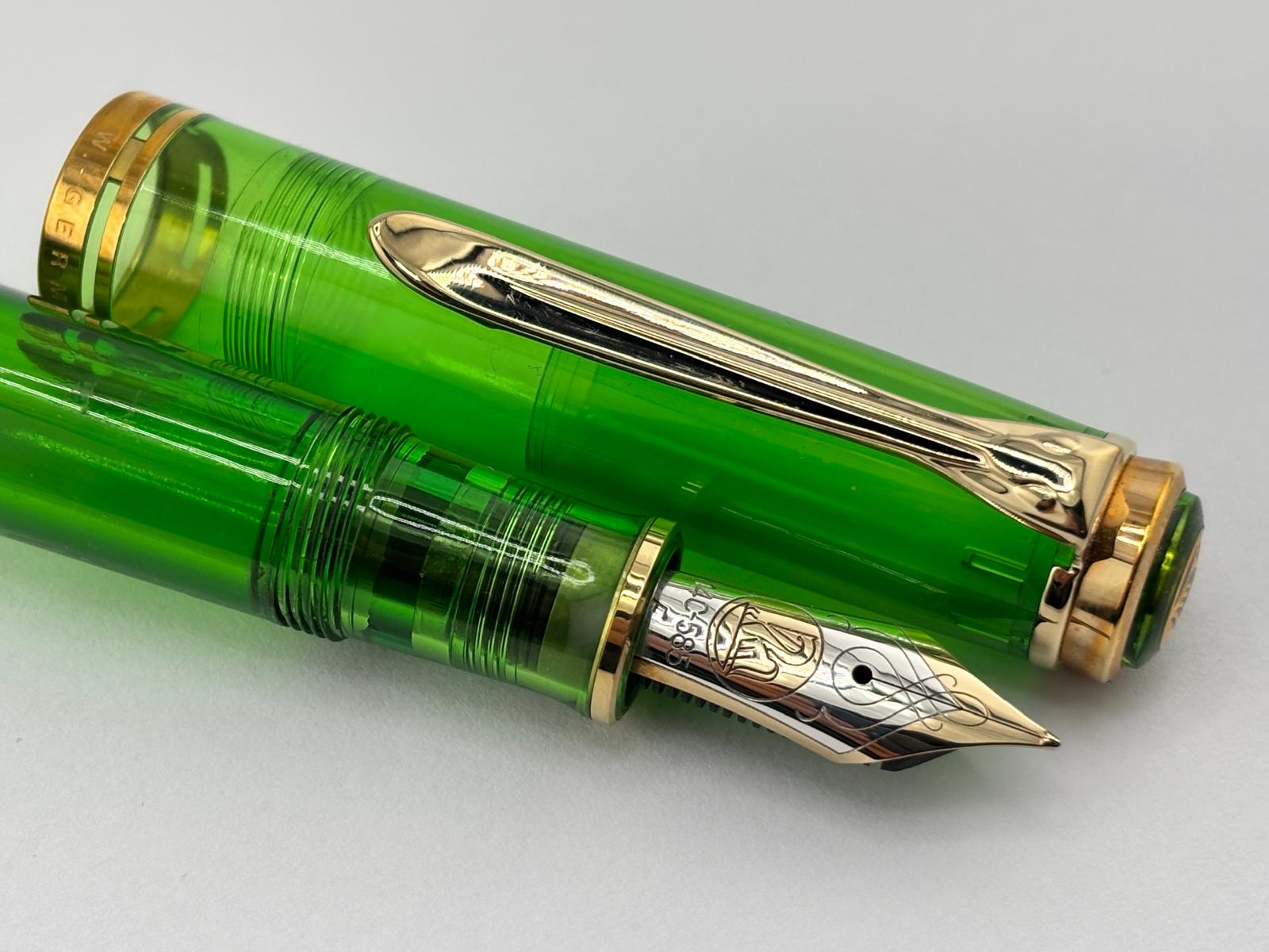 Pelikan M800 - The Original Transparent Green Demonstrator Limited Edition Fountain Pen (Circa 1995) - Fine 14C Gold Nib