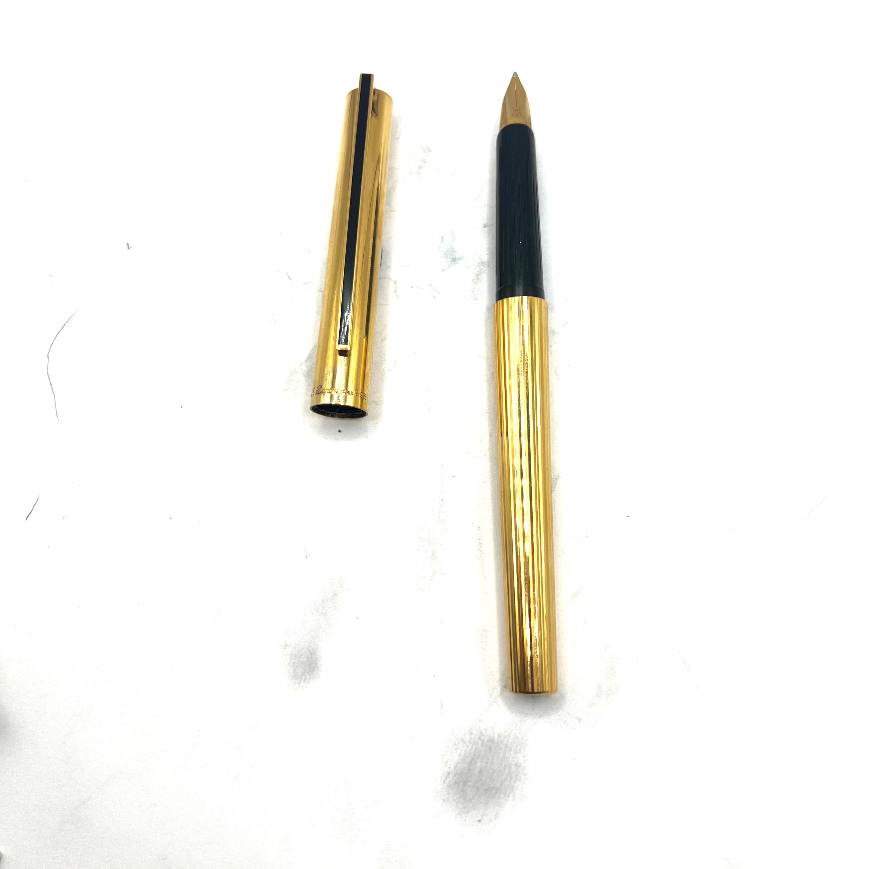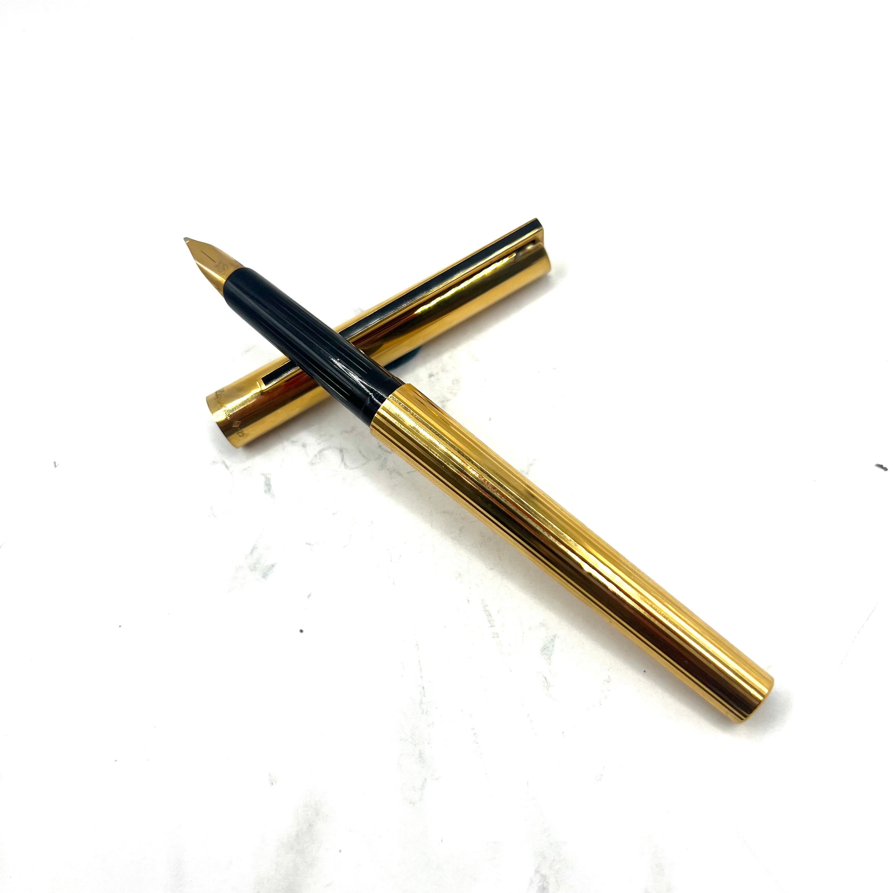 S.T. Dupont Gold Vermeil (Sterling Silver Base) - Smooth Cap/ Fluted Barrel Classic Fountain Pen - Broad 18kt Gold Nib
