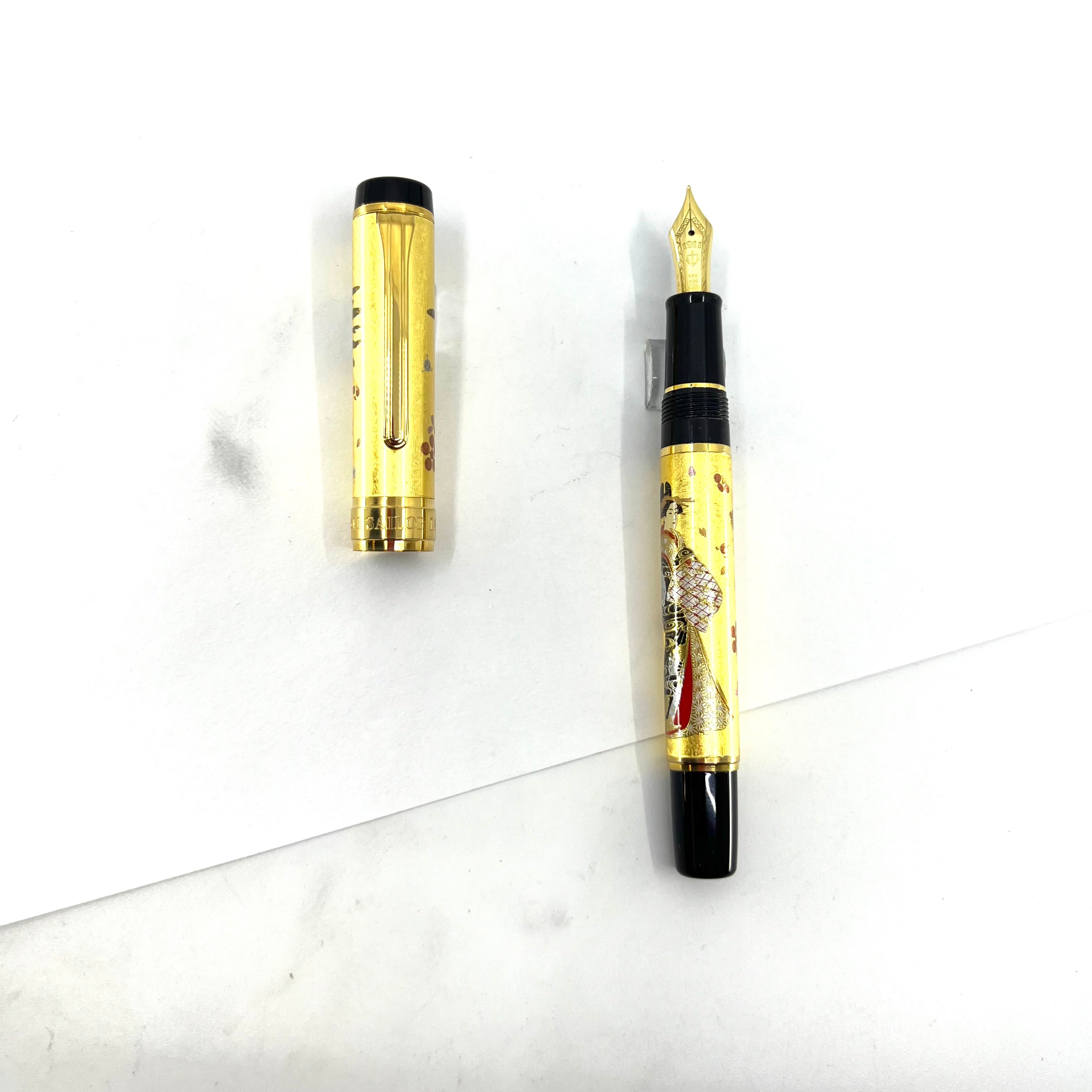 Sailor Kin Rei Maki-e Gold Leaf Courtesan/Geisha Fountain Pen - Medium 14kt Gold Nib