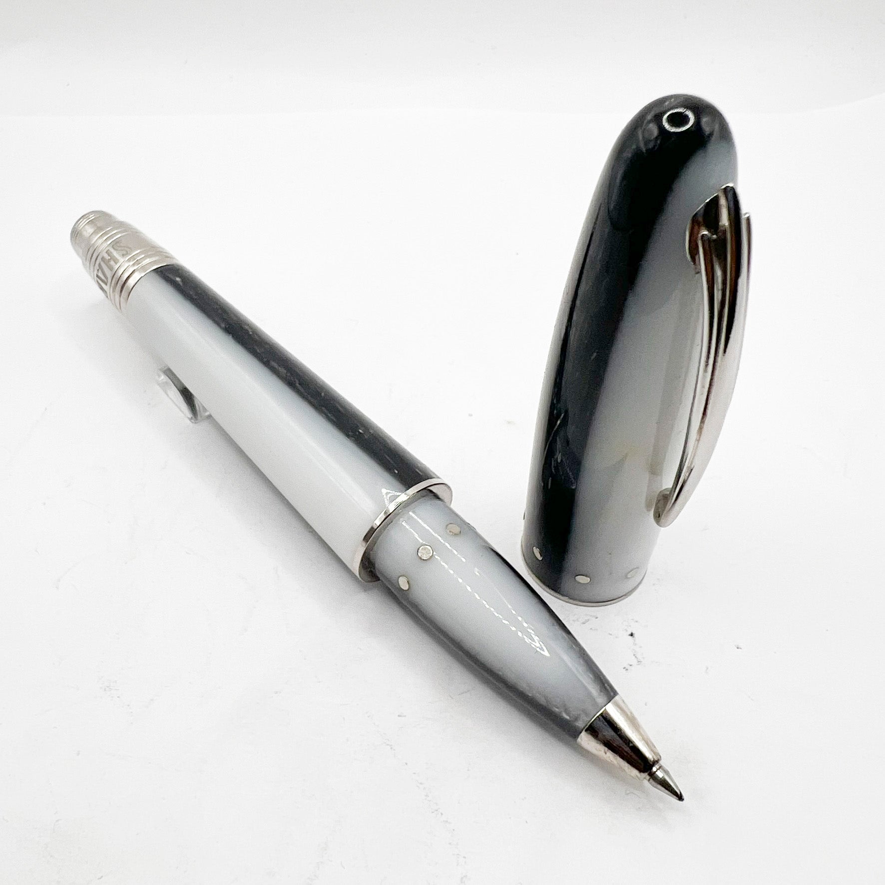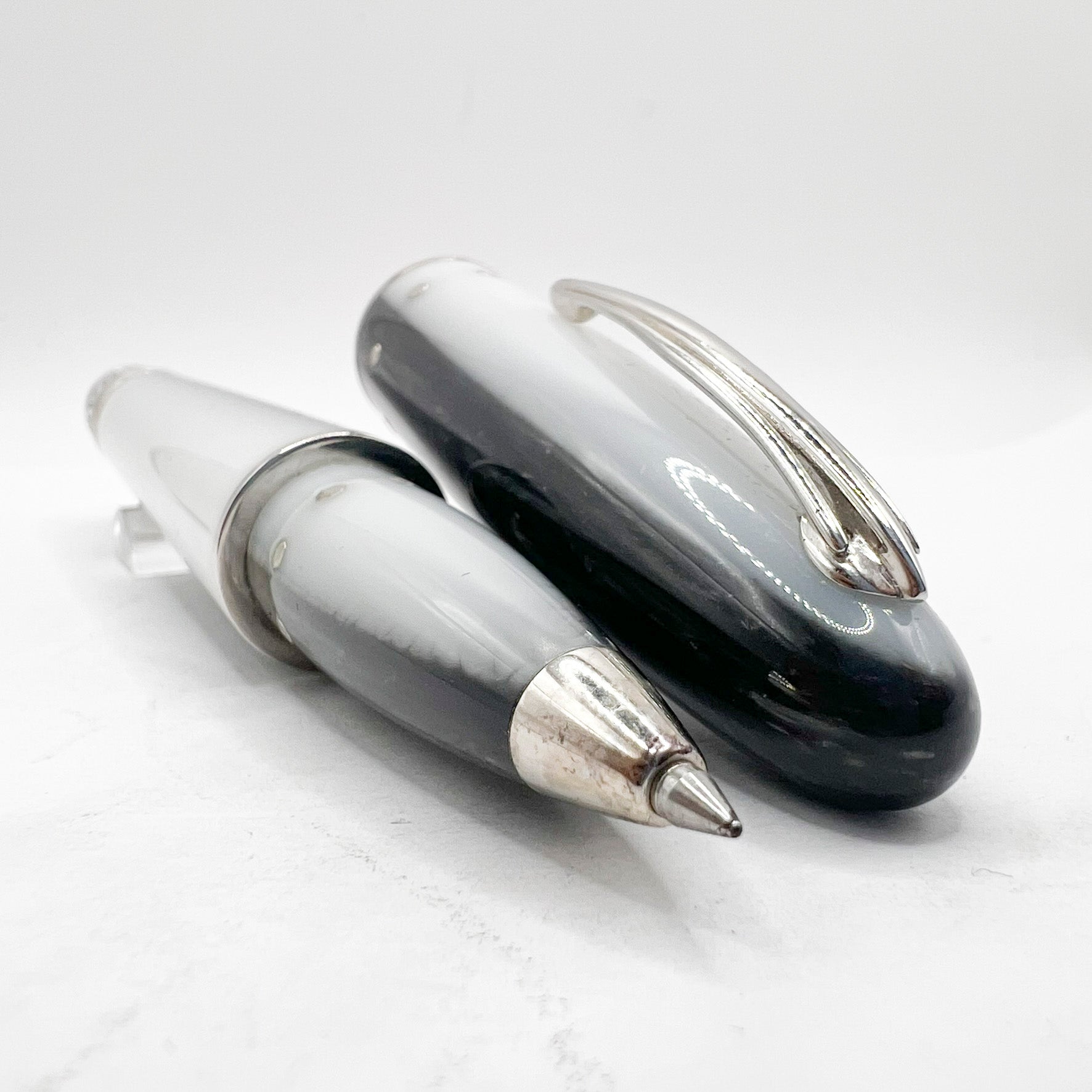 Nettuno (Italy) Shark Oversized Convertible Rollerball/Ballpoint Limited Edition 31/400 - Lustrous Alternating Charcoal & White Resin - Platinum - Plated Trim - Circa 2005 - No Original Box - Resembles Actual Shark in Shape & Coloring - Virtually Mint - $235