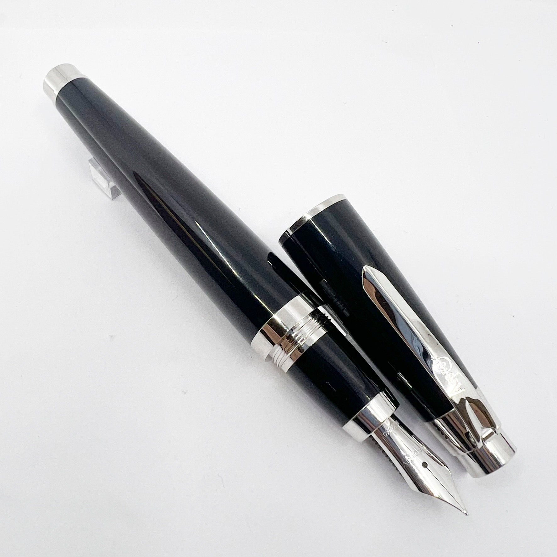 Asprey of London Black Lacquer Fountain Pen - Medium 18kt Gold Nib
