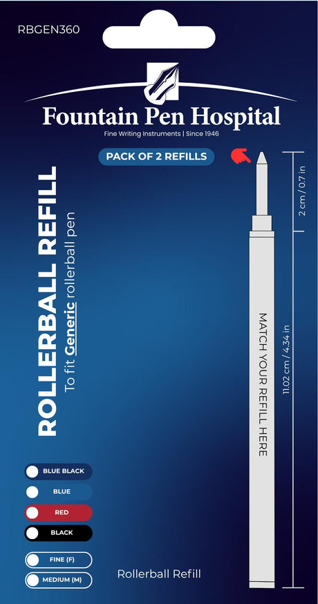 Rollerball Refill by FPH - Fits Most Rollerball Pens (Pack of 2)