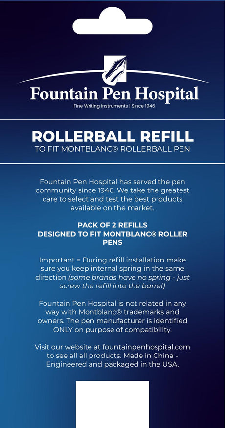 Rollerball Pen Refill by FPH - Fits Montlblanc (Pack of 2)